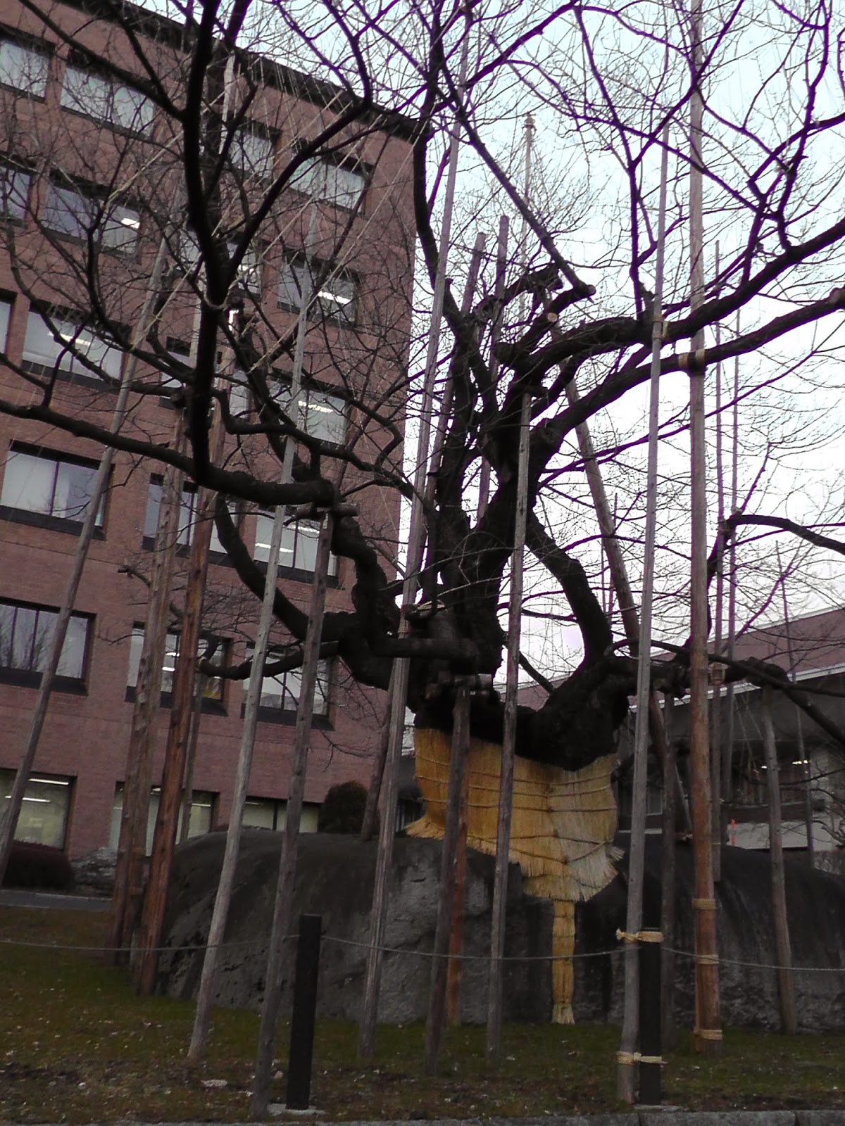 I was lucky enough to bump into some fellow employees at the visa office who gave me a lift to the company office, my bag of books was going to be a pain to carry the 2km or so. After returning the books I wandered around to find the ‘rock splitting cherry tree’, something of a ‘natural national treasure’, located outside a government building. Not so impressive until spring hits and the cherry blossoms are in bloom, you can see by the photos it is pretty well-regarded!