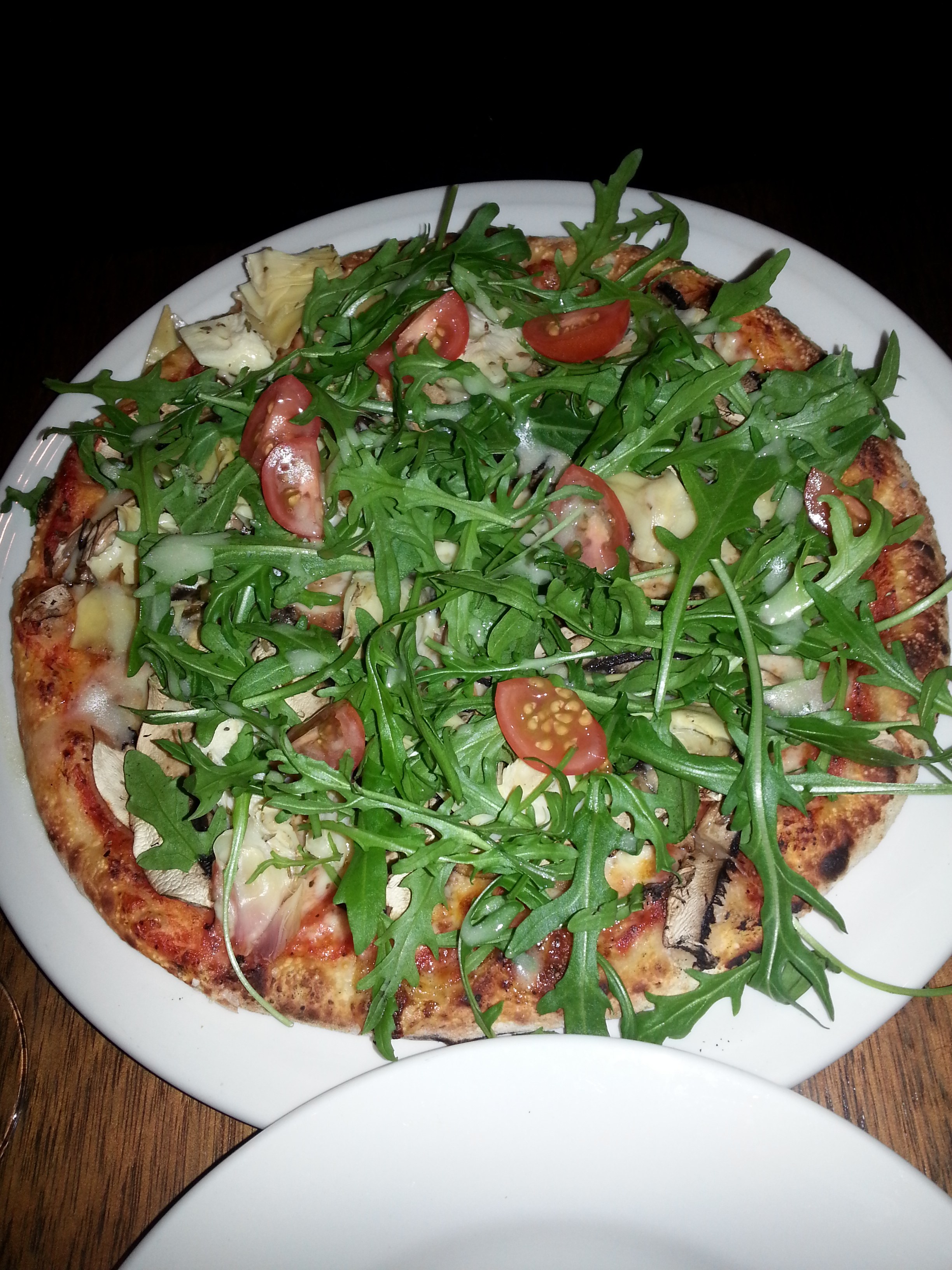 I had the standard Capriciosa pizza (that’s olives, ham and mushroom) and my wife had a really nice artichoke pizza. They have a deal on three nights a week (Tuesday to Thursday) which is $20 for a pizza and a glass of house wine, and it can be the small or large size pizza so it worked out pretty well. The red was really nice, the white perhaps was a little acidic but for dining out with proper wood-fired pizza, it seemed a reasonable deal.