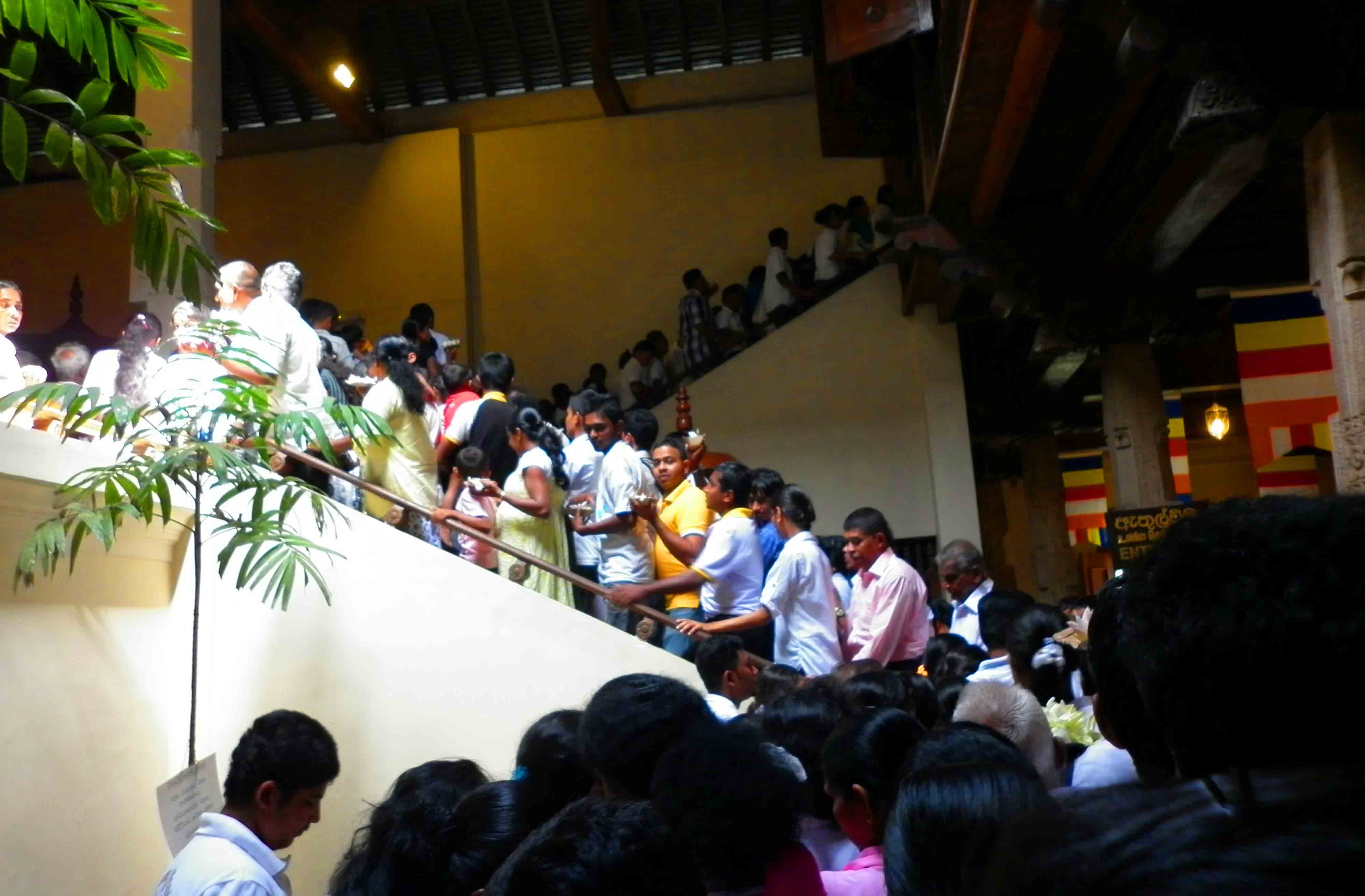 If you want an experience of real serious crowds, then come to the temple at a festival time and like my wife and I you can find yourself moving slowly up stairs and along walkways, shuffling toe to toe with thousands of others to get in. Inside, you’re in a UNESCO World Heritage site. A beautiful temple complex, with a small museum, and in the ground elephants. It’s a must see in Kandy.
