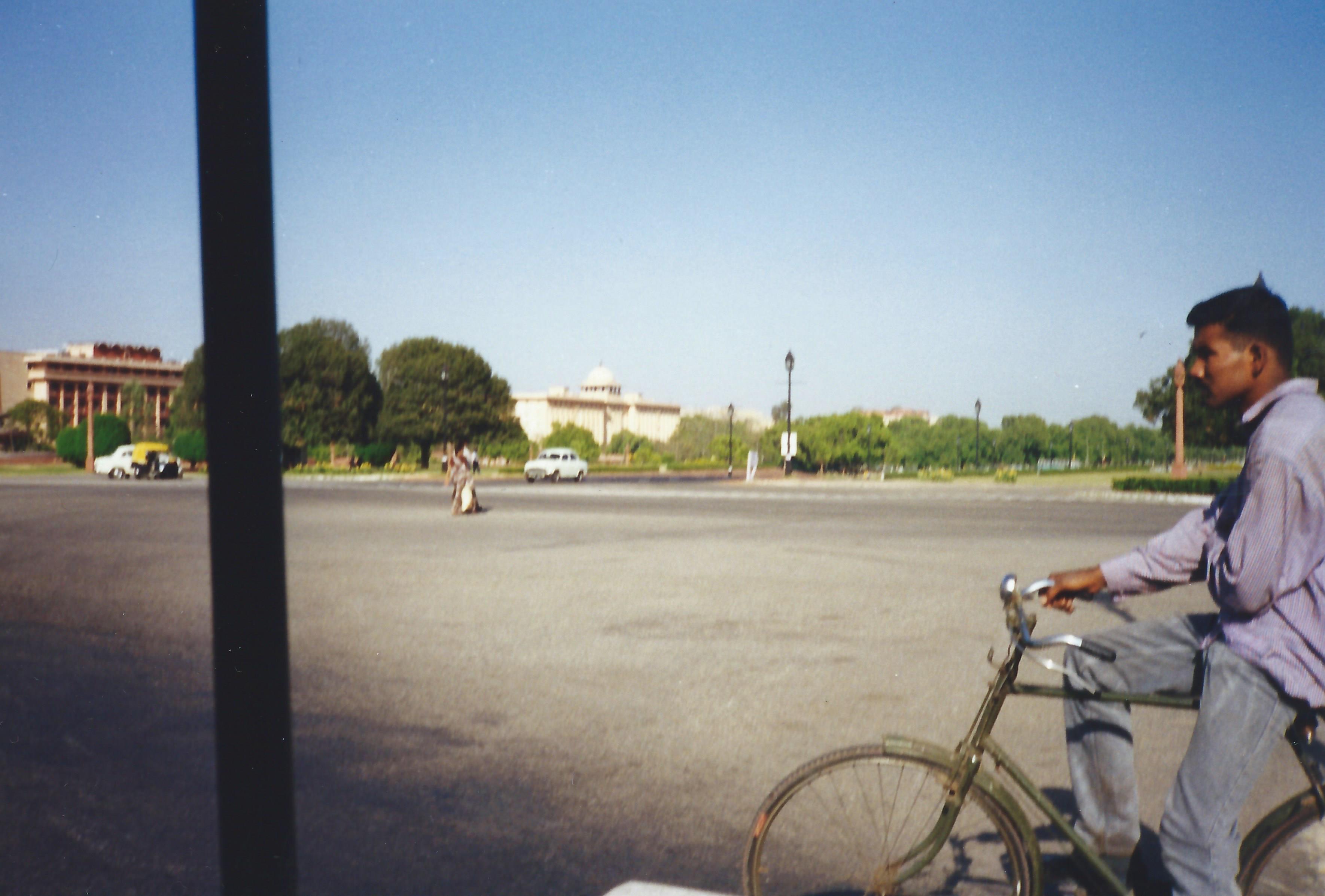 Out the side of an auto rickshaw in a surprisingly quiet area of Delhi