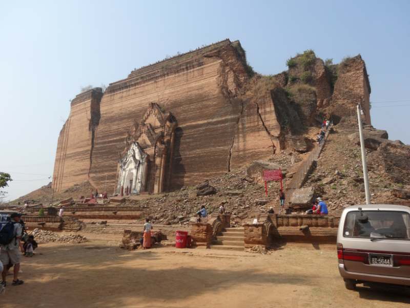 Today I was taken to Mingun, another town close by Mandalay, and another ancient capital. The most mind-blowing of all sights was the bottom third to a stupa that was never finished. It’s huge and bigger than any of the other stupas I have seen. It was started in 1790 and when the King died in 1819 they stopped building it with the top two thirds still to go.