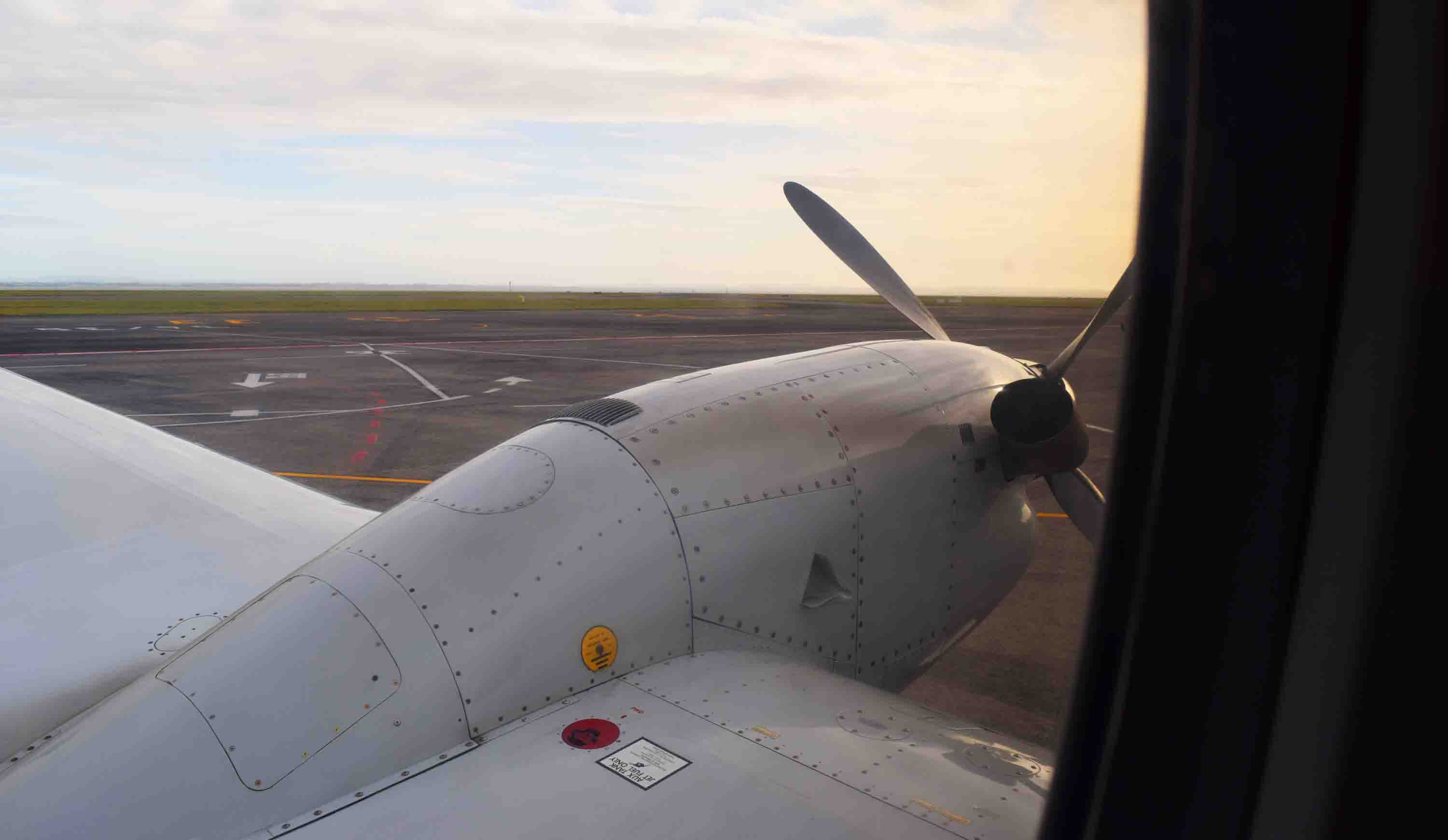 The Beech 1900 was a special little plane, with propellers whirring and ready to go. We waited in the terminal before being called through the one door and walking across the tarmac to the plane. They told me to put my camera away on the tarmac, but I managed to get a couple of photos before I did.