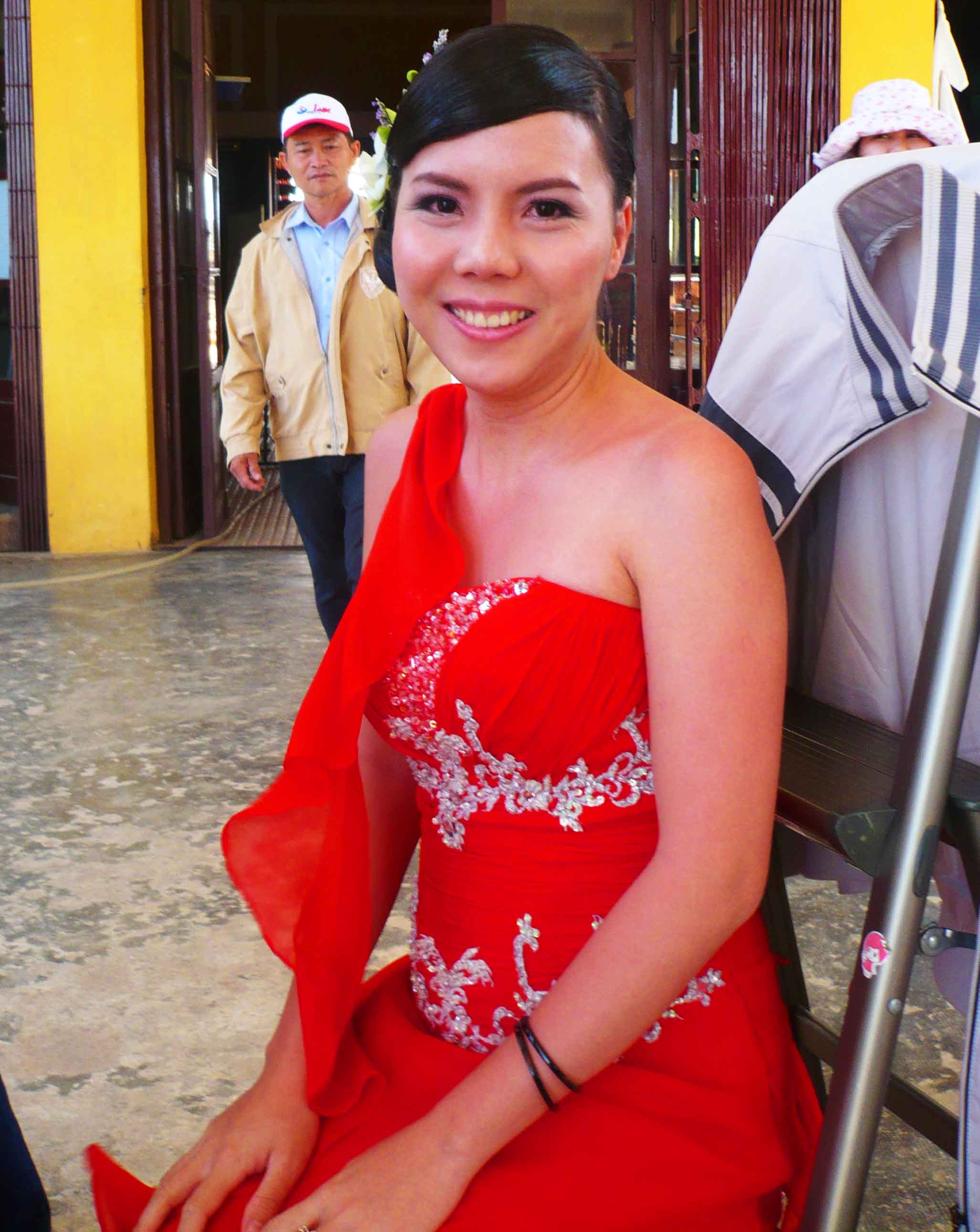 A bride at the Da Lat train station. Red is a traditional colour worn by Vietnamese brides.