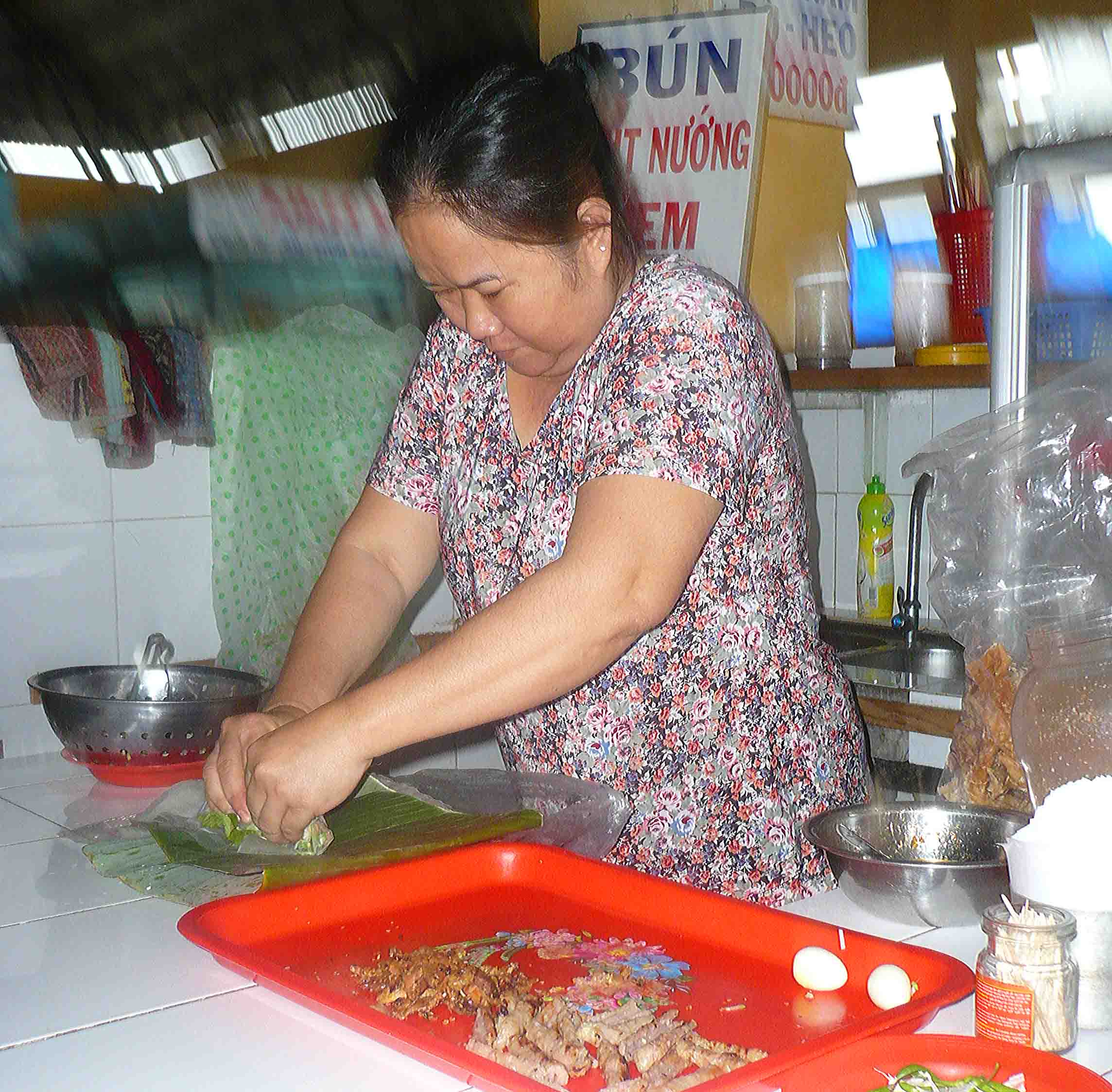 Making rolls in a cafe in Nha Trang.