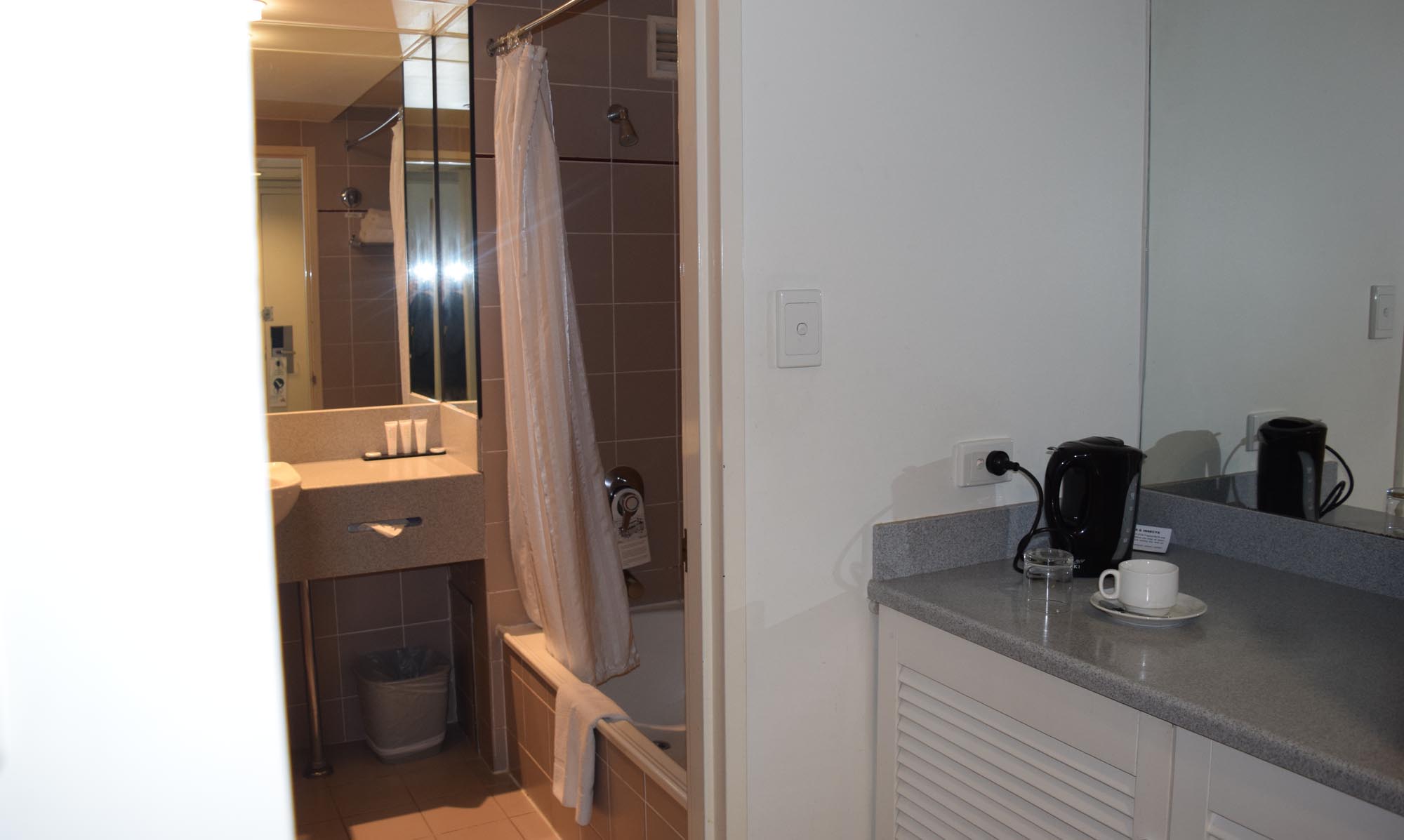 In the room the table was a fair way from the power point which wasn’t too good for using the computer. Luckily tables can be moved! Noise was a factor, Saturday night there was some music pumping until around midnight from I think a wedding reception and conversations were easily heard in the corridor, not to mention every time our neighbours used the shower or toilet we could hear it. The noises were annoying but not overpowering and not a huge minus.