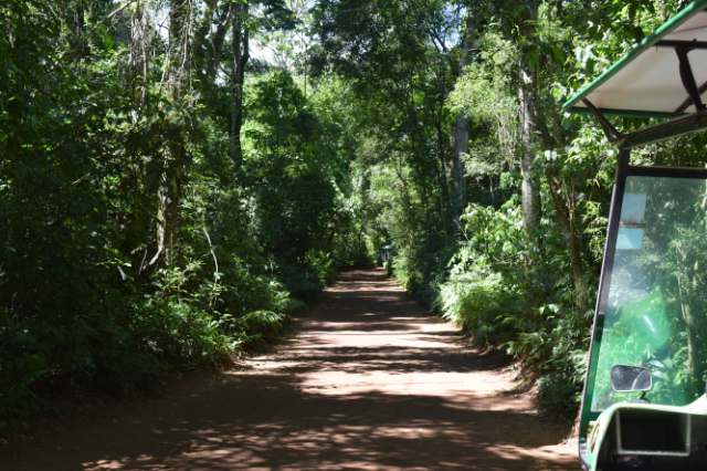 That was an electric vehicle through the jungle, optional 30-minute walk through the jungle to a sort of lift that takes you down to the river and finall you board a speed boat. The ride was great and everyone got totally soaked by the falls. We also got to see the Argentinian Falls and the Brazillian ones from the river. The Brazillian ones are way bigger!