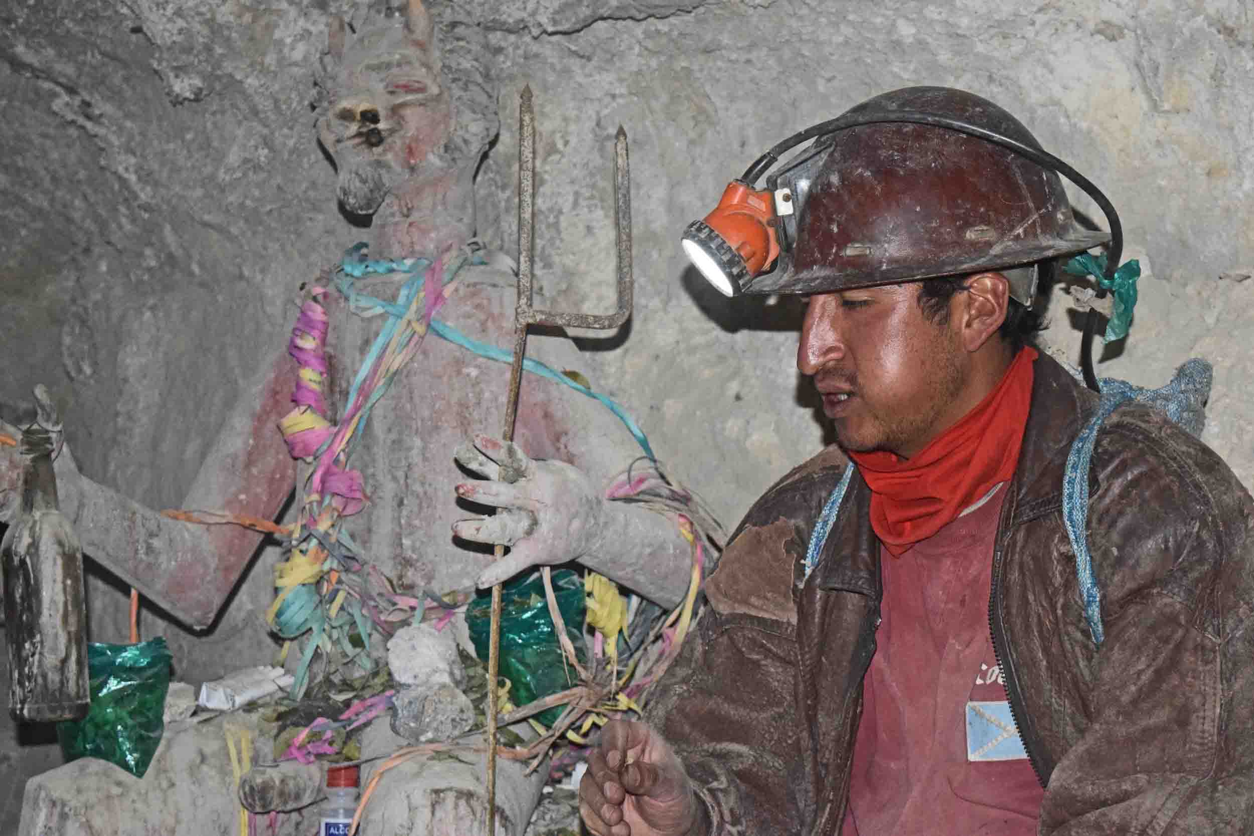 Our guide with a statue of the mine’s God, Tio.