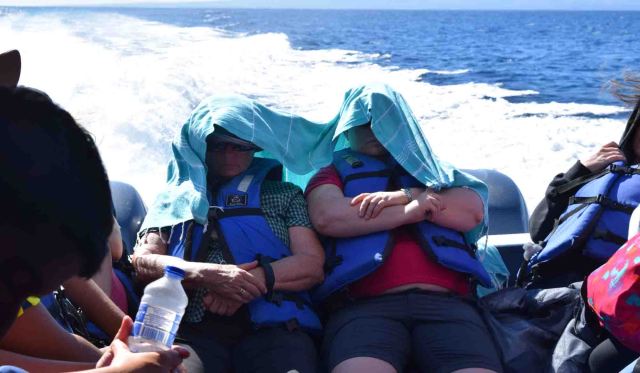 The boats get very hot inside, so it’s a good idea to go at the back. Mind you then you deal with a lot of spray, but you are less likely to get sea sick. Being part of a group our guide got us on the public boats FIRST, so we were able to choose exactly where we sat. A good call.