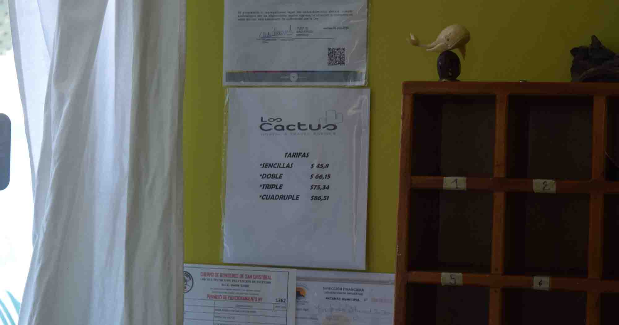Work was being done, there was very little evidence of staff being present much, but it was okay really. I saw the price list though at over $60US I thought the rooms were vastly over-priced. But, one has to remember – it’s Galapagos. The room was bare but had a fridge. The shower was electric and thus pretty poor.