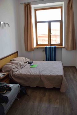 Finding the entrance is not so straight forward – the hostel is up on the third floor of an apartment building, and you enter from the back. Under an arch and around the back it was like the fourth door along, up the stairs and the top floor to again another very well heated hostel.