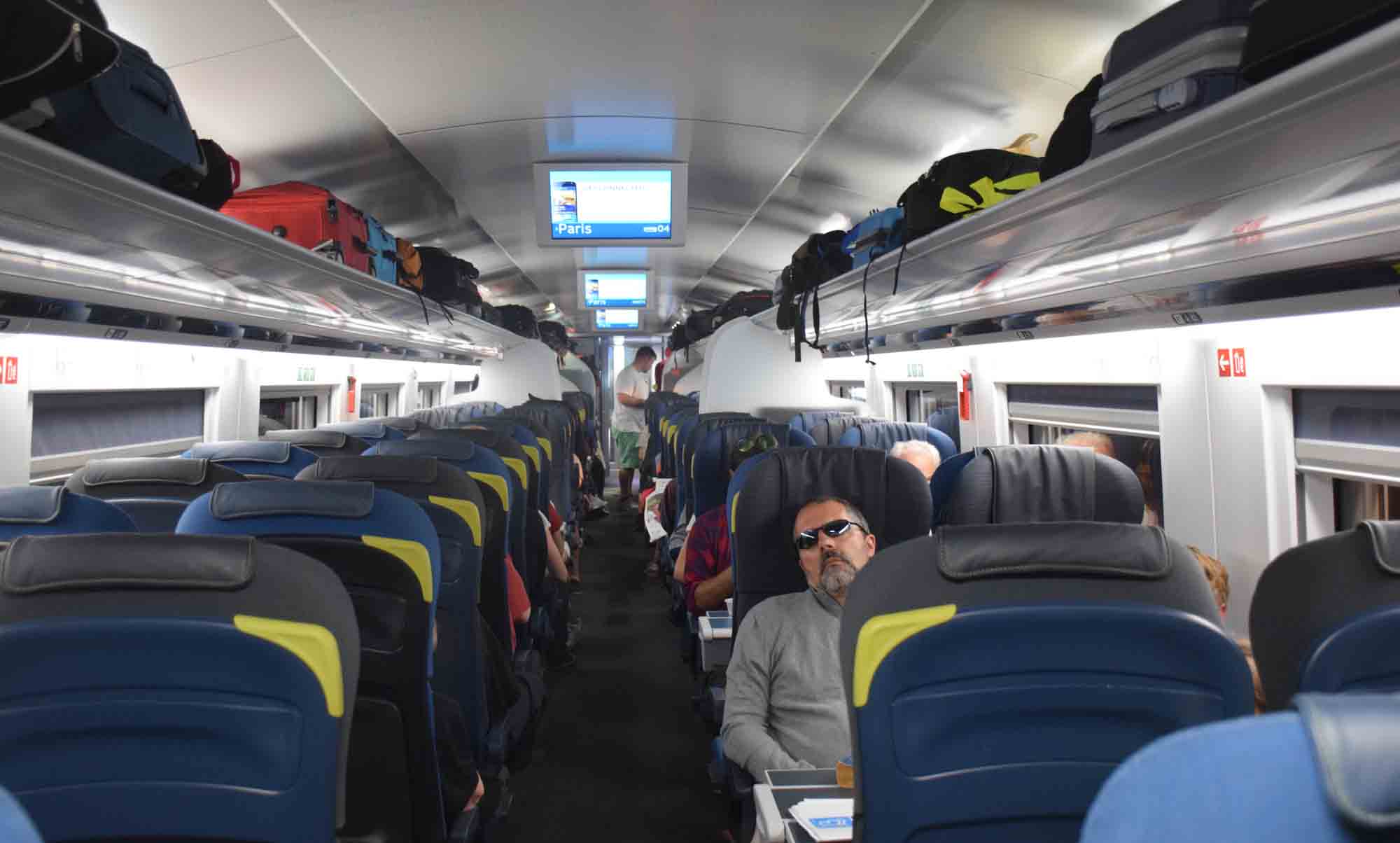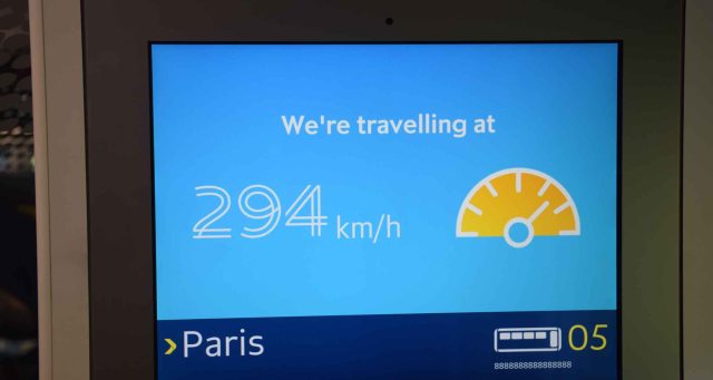The train goes fast. I had no idea. It hit 300 km/h at one point. And it’s pretty smooth but there is a bit of rocking from side to side which is hard to counter if you are walking down the aisle. We voomed into the tunnel after a short while, then I guess 20 – 30 minutes (max) underground before we appeared on the European mainland and were in France.