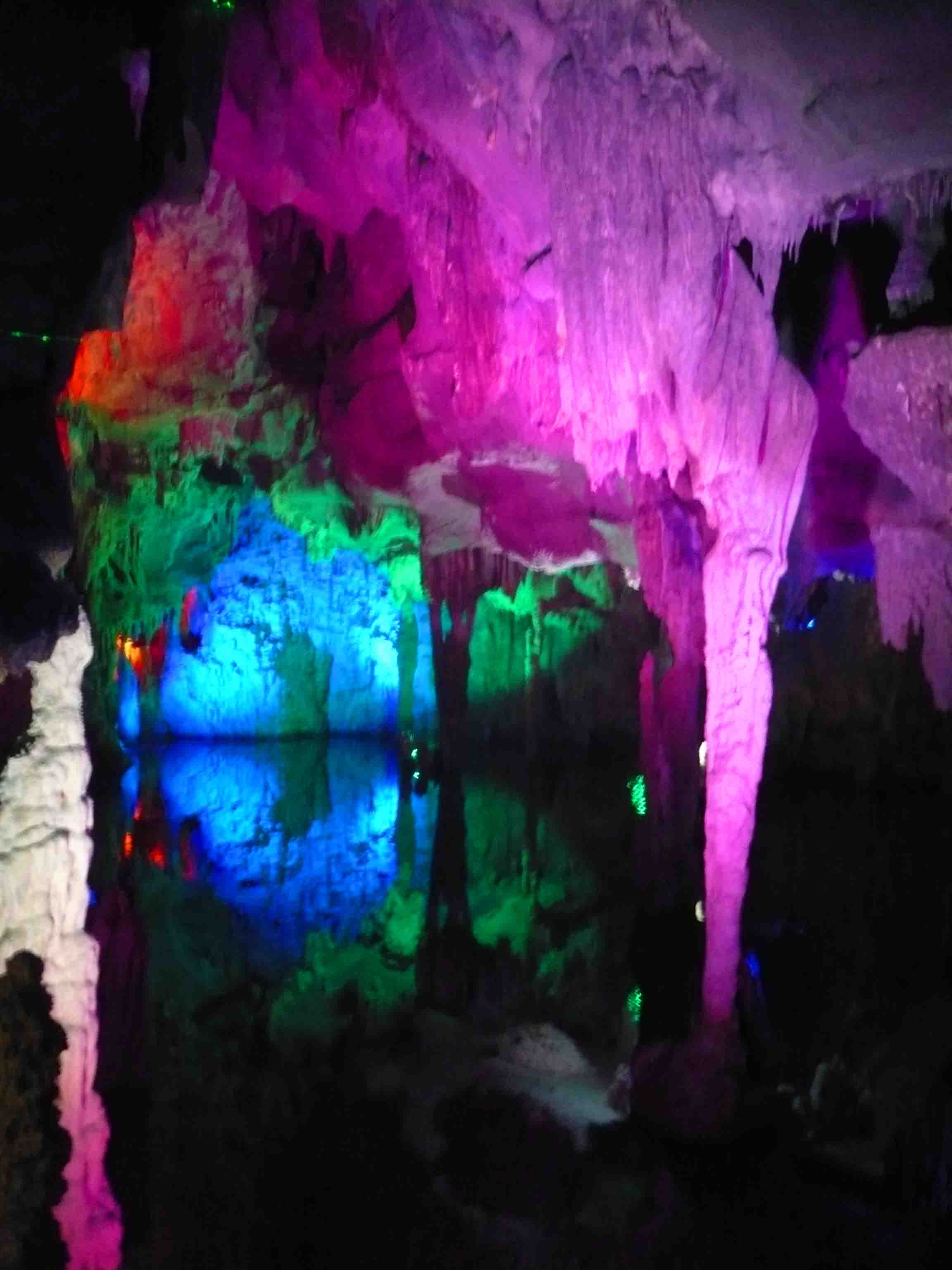 I found my way down to the Silver and Water caves a few kilometres out of town. This was a very interesting tour I took through the caves, mostly by boat from memory. Everything is lit up in different colours. They are extensive cave systems and it is worthwhile, but at the same time it’s extremely busy and packed with people taking selfies. The caves are done up in colours and designs rather than left to show their natural beauty. But that’s okay. That’s how tourism is done in China.