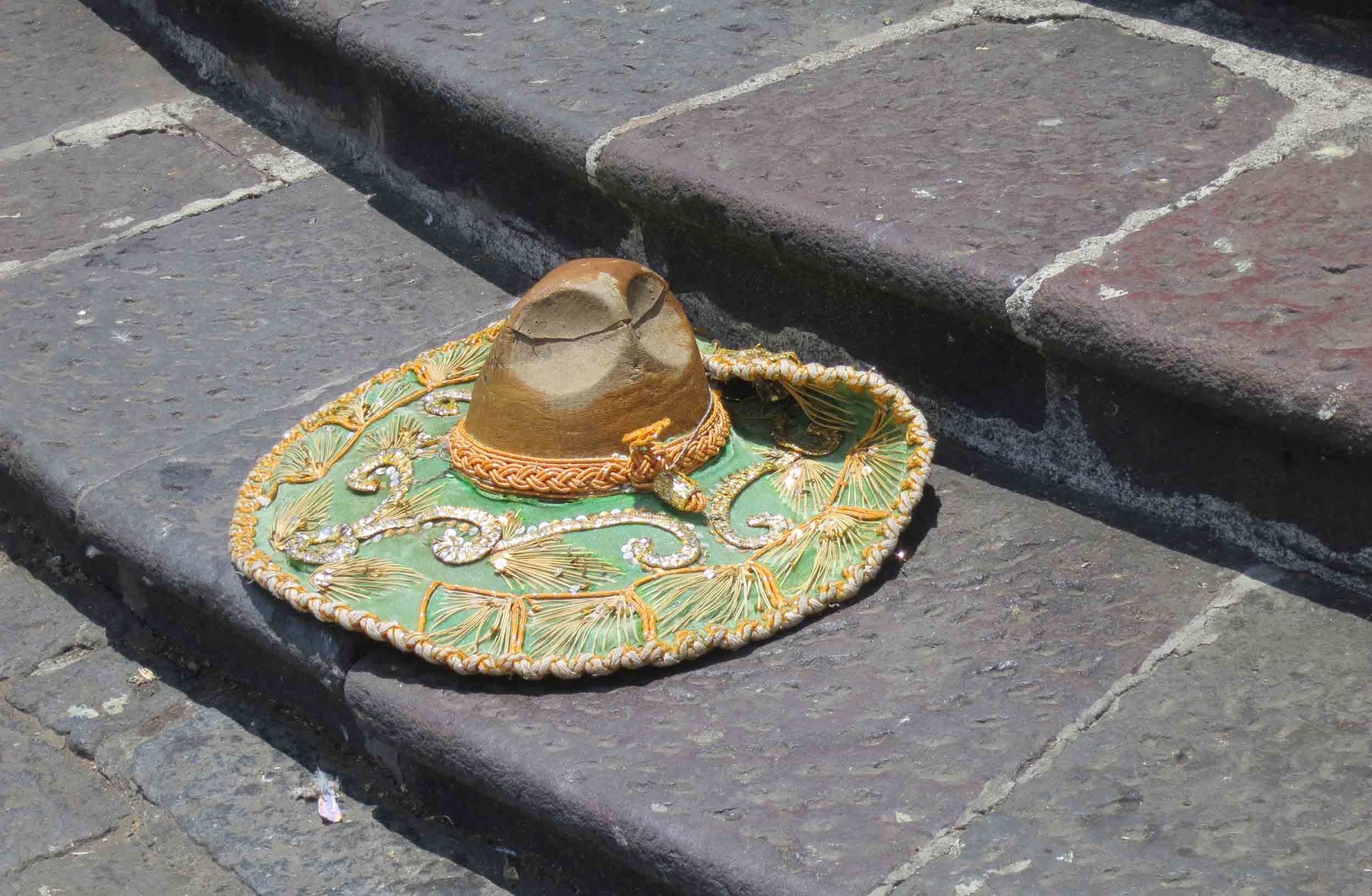 A lone hat on a stone step.