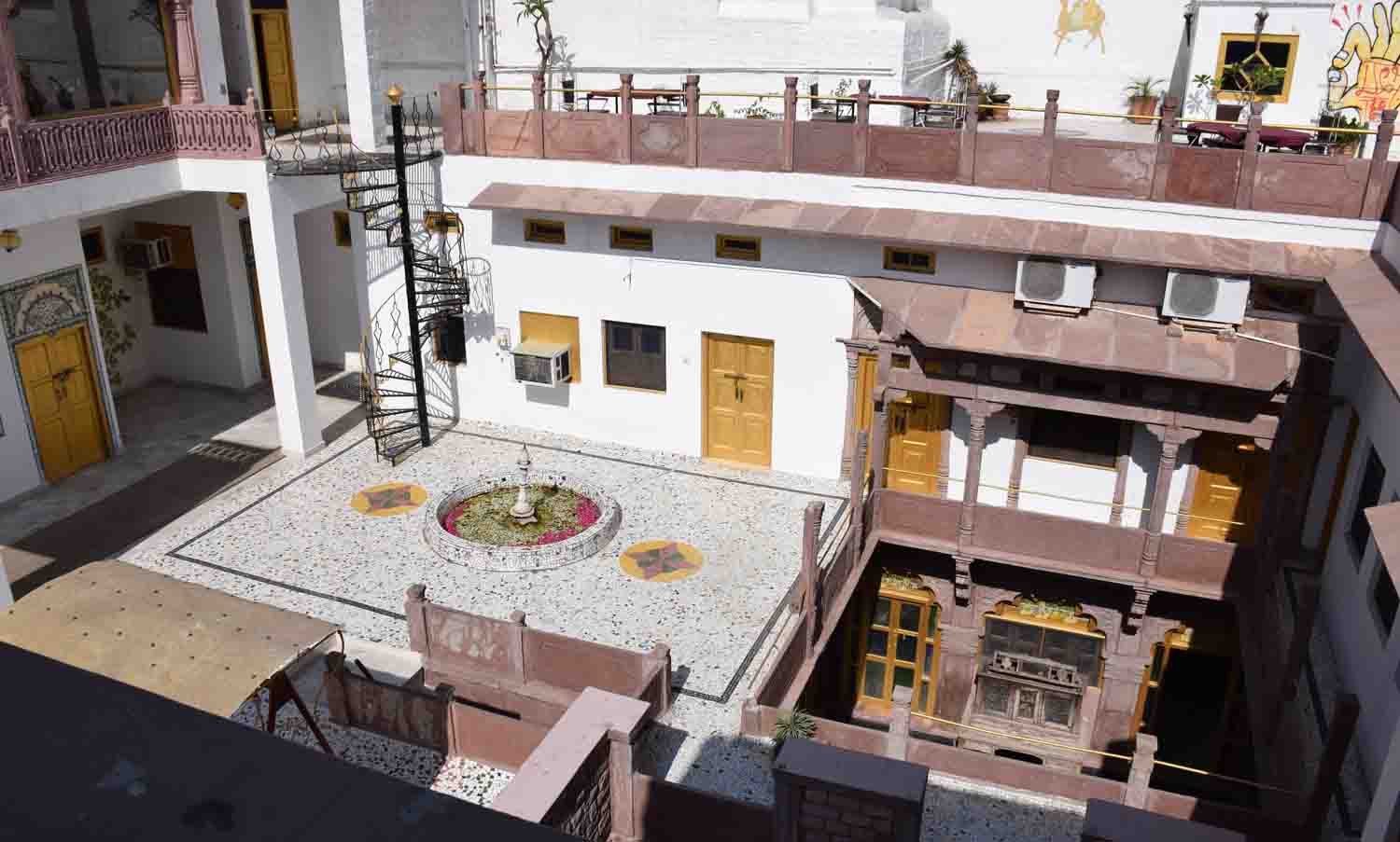 You walk through into this open courtyard. It’s tiled, there’s a fountain, there are a couple of balconies too where you can enjoy a drink or a meal from the restaurant. To the side, behind a wall, is a pool. I didn’t use the pool this time, I guess it wasn’t as inviting as the one in Jaipur as it was completely under cover. But others used it and seemed to like it.