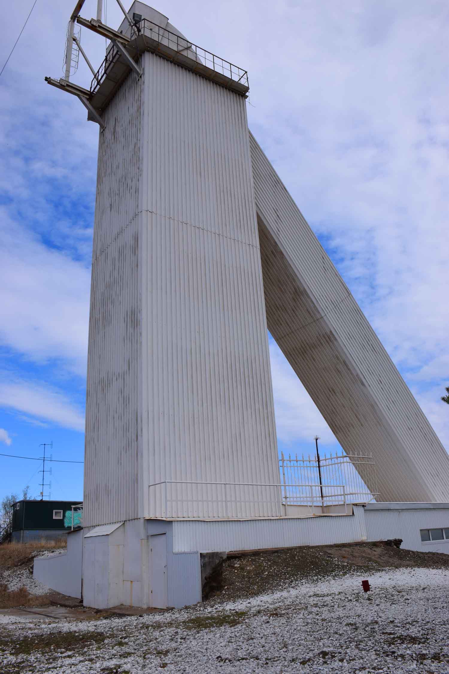 There was some sort of telescope thing at the top of the hill. I had seen it from below. I presumed, I hoped, that the track was taking me there. And then, suddenly, I WAS there. There was a fence, a gate, I went through. Did I jump the gate? No, it was open. There was a white building and then this sort of really high building which was thinnish up some steps. The telescope, no doubt. I climbed the steps, and I started snapping.