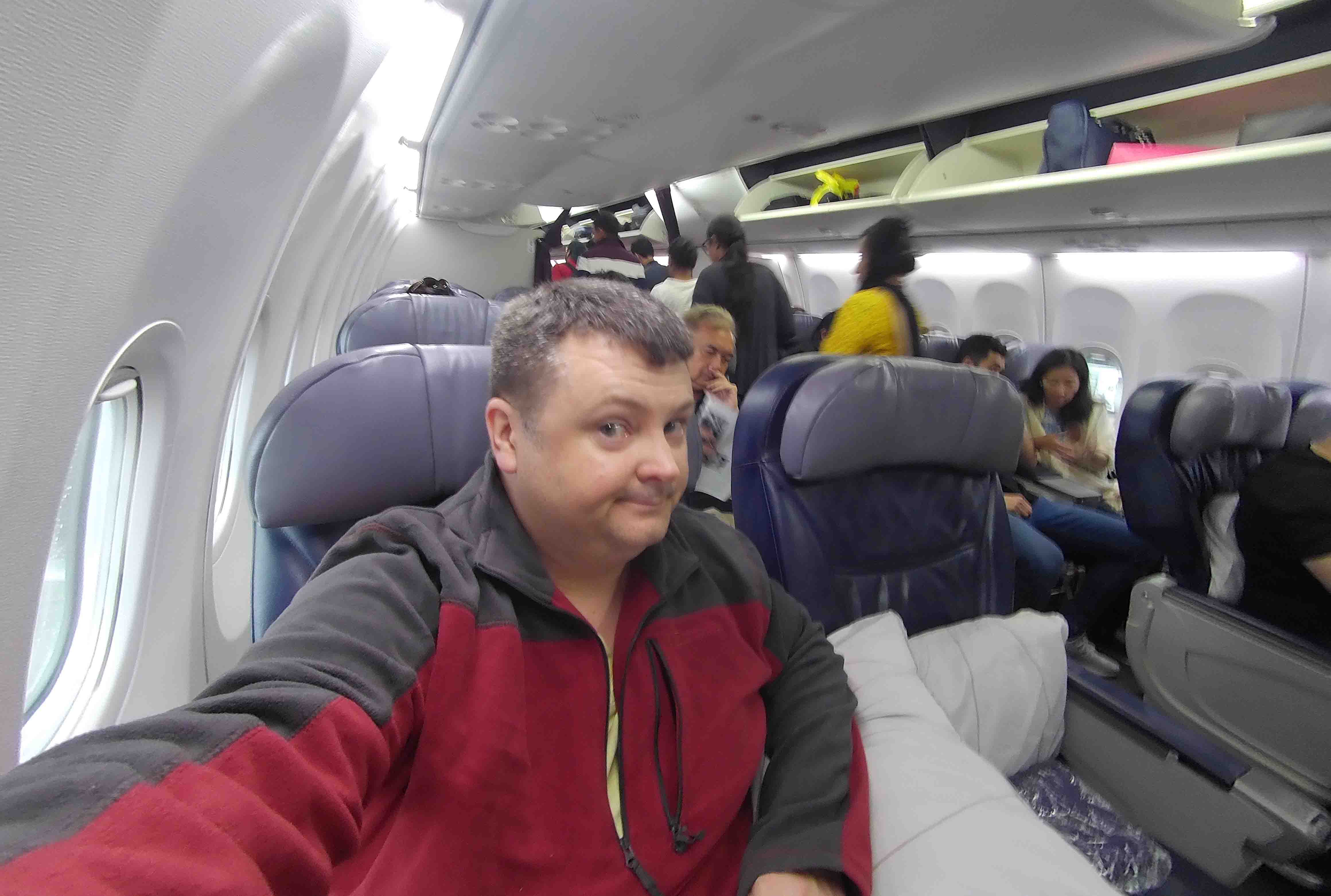 The lounge was in fact shared by a number of airlines – the SATS lounge. Not that it made it particularly busy. There was a spread of food which was basically hot breakfast food, and it was okay, free and my lunch for the day. There were a number of comfy seats to relax in with charging points for devices and the like, plus tables and chairs for eating as well. There were two massage chairs, and yes I tried one, it was pretty good. The colour scheme was a little dated and very beige I guess, although I probably wouldn’t pay to use the service/lounge, it was nice to be away from the busy-ness of the airport and have a place to chill for a couple of hours.