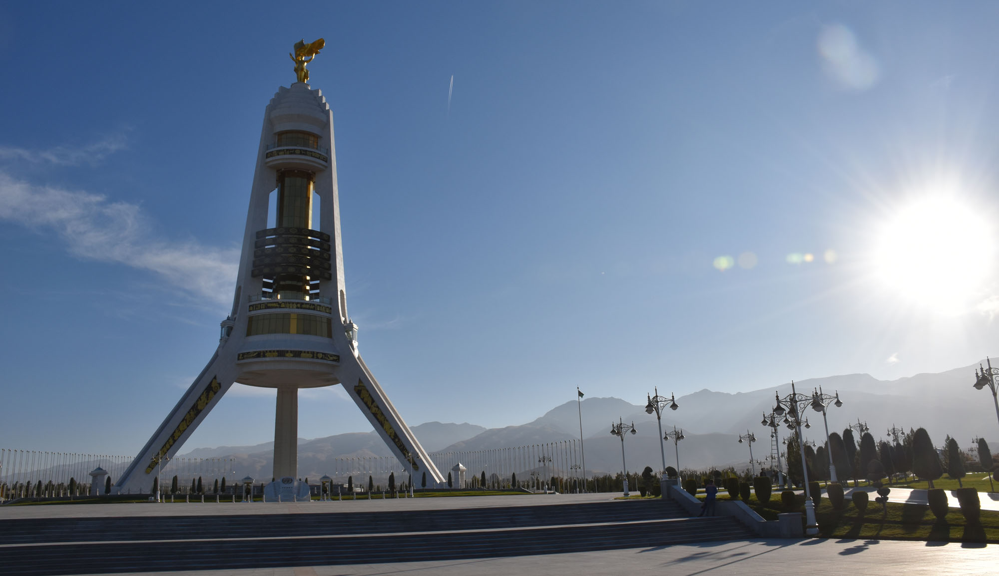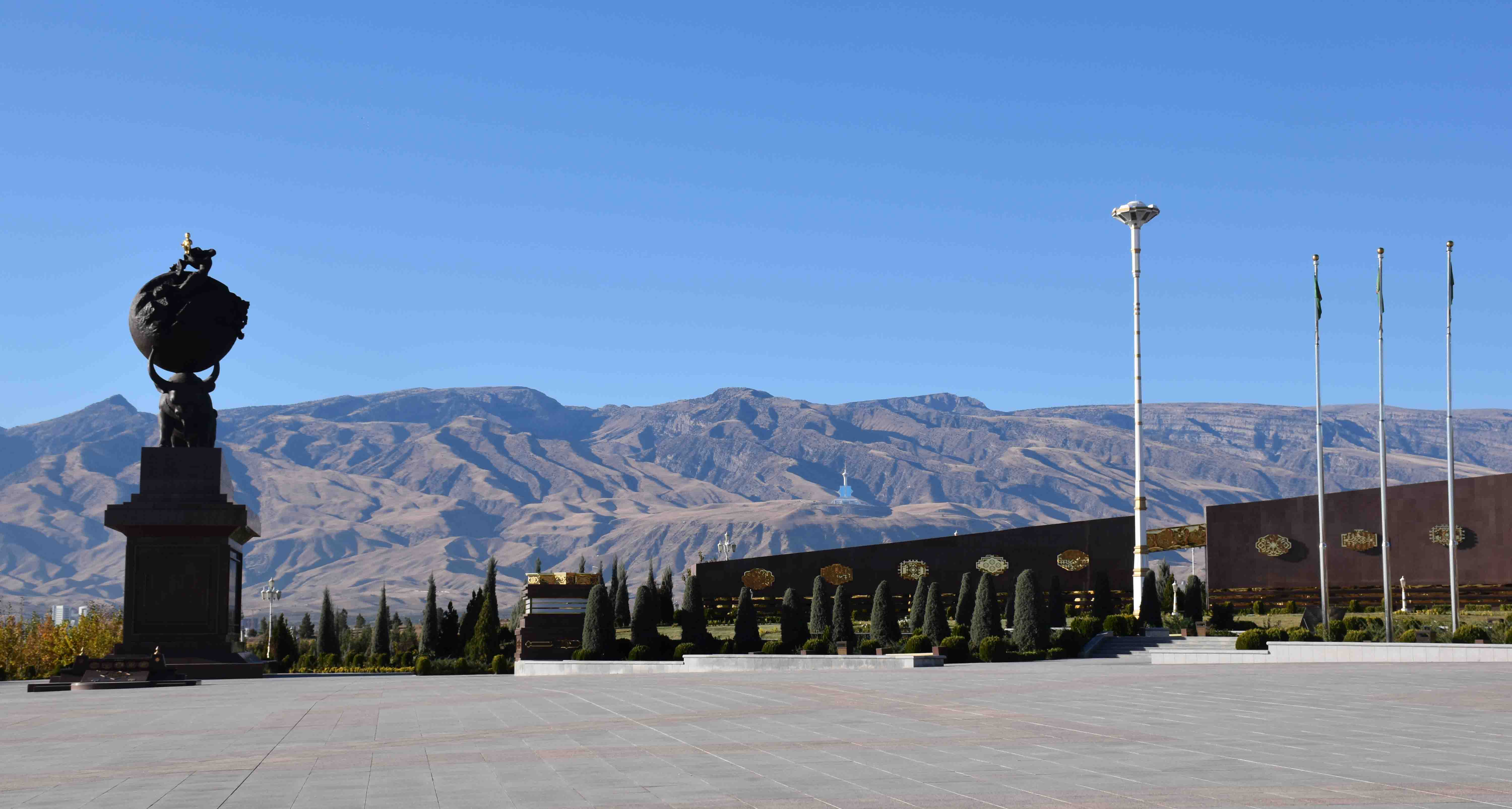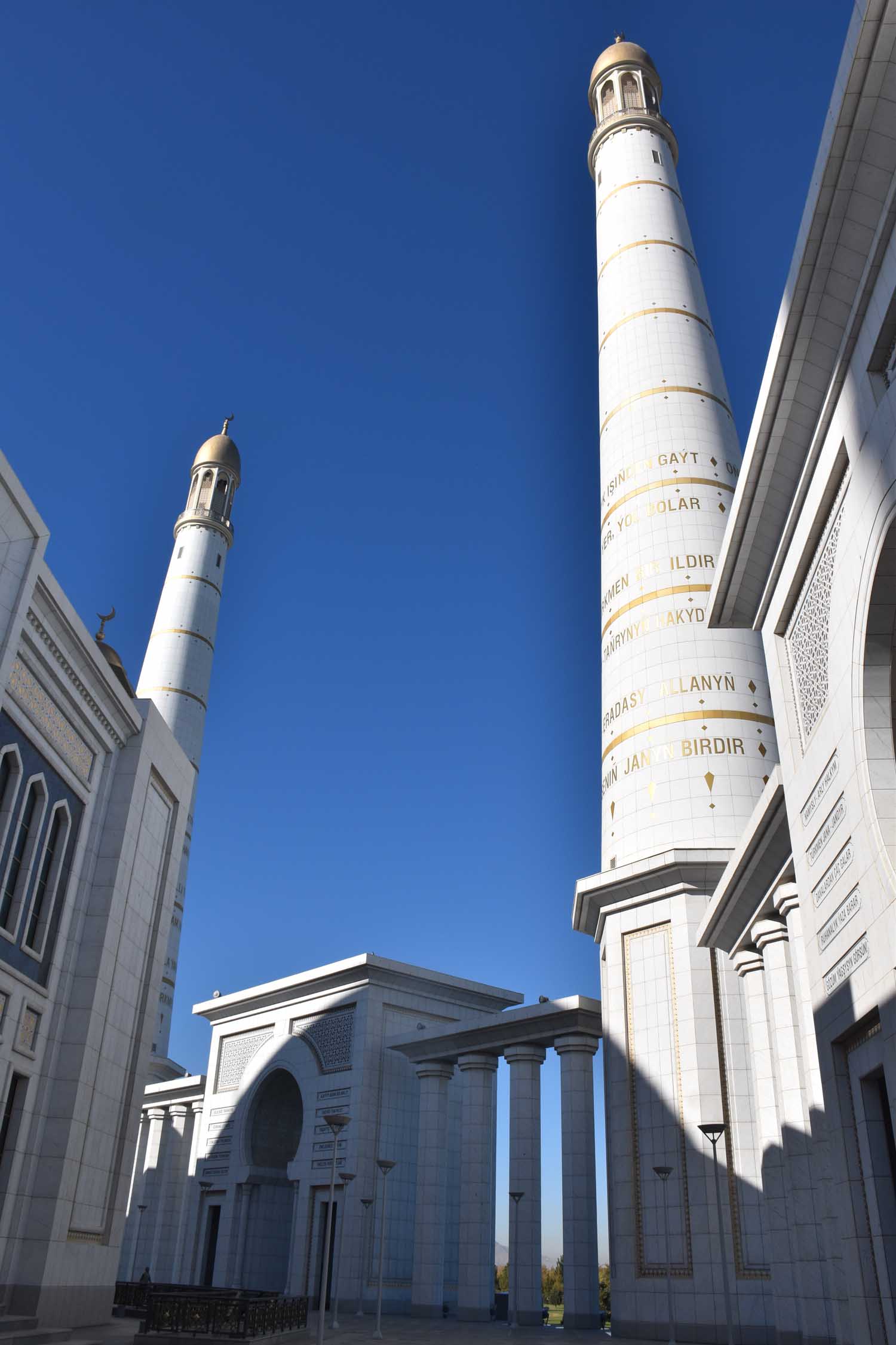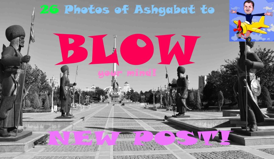 Hi all. Today I’ve pulled out some (26 in fact) photos I took in Ashgabat, the capital of Turkmenistan, last year. You’ll see statues of Turkmenbashi, the enigmatic leader who became President after independence, there’s also the mosque he named after himself and indeed a giant stone statue of the book he wrote about Turkmen history. You’ll notice an awful lot of marble – the city has the most marble in one city in the world, and the cars are all silver or white. You’ll also notice a lack of people! And that almost every roundabout is decorated in some way, shape or form! But one thing for sure, it’s no ordinary city!