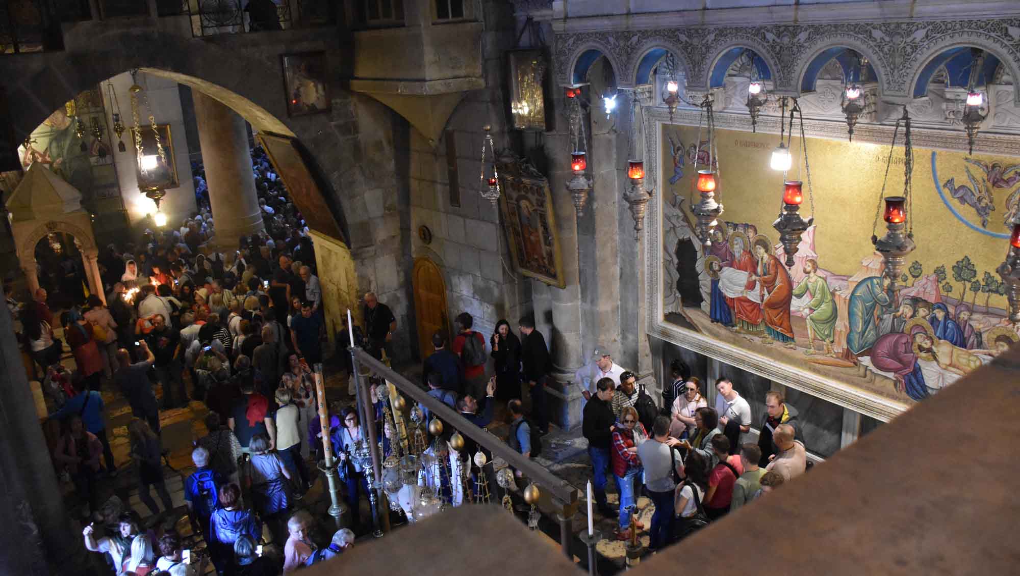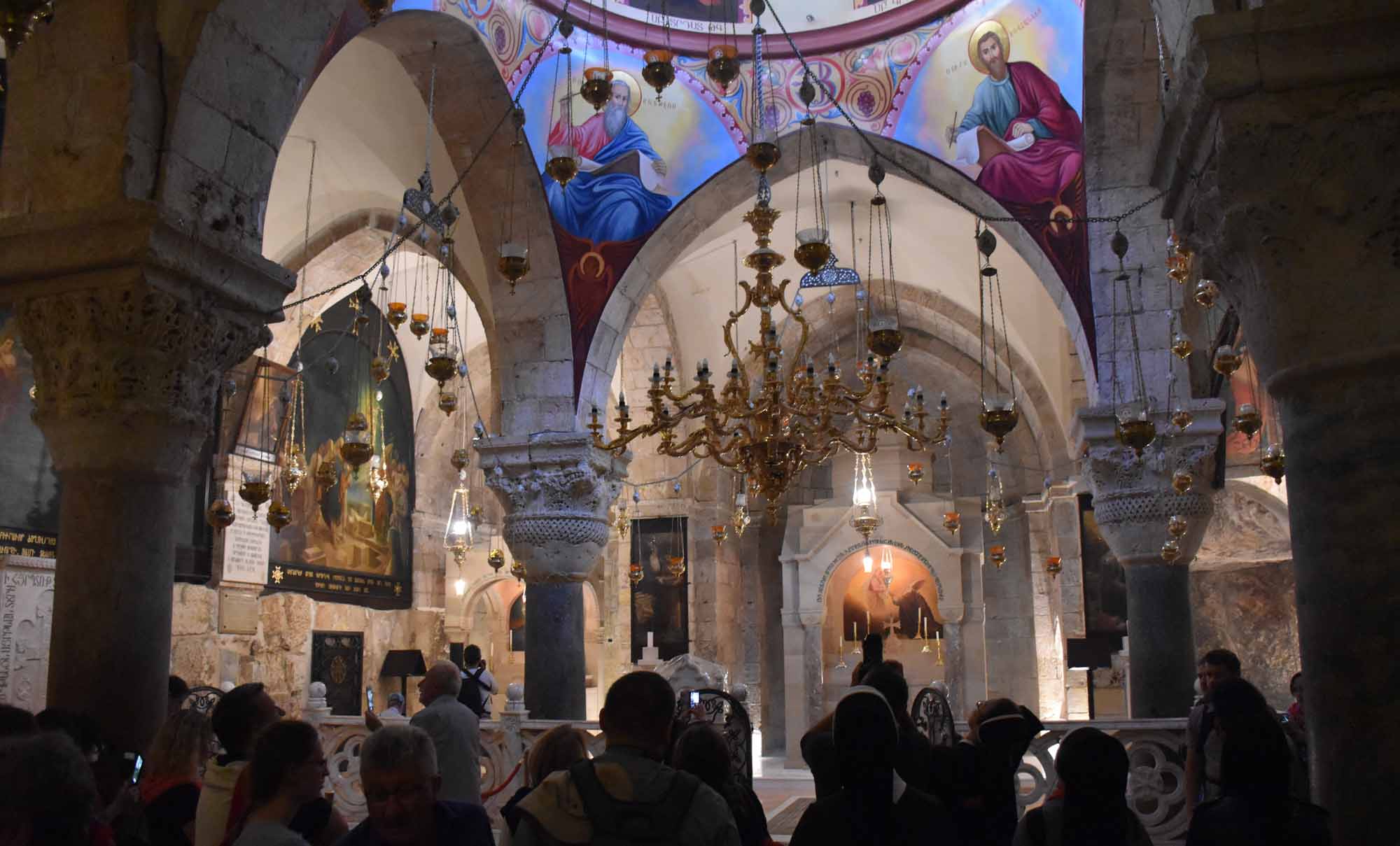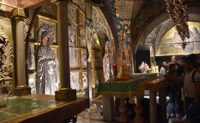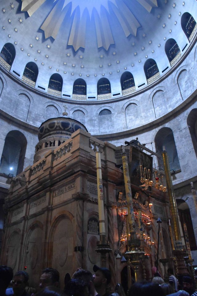 Hence one of the two reasons this site is considered so holy. The other being that this is also the site of his tomb, where he was buried after crucifixion – that being Good Friday, to rise again on Easter Sunday. The Holy Edicule therefore is the most holy point in the church, and to me it’s unclear if this sort of edifice under a dome (Dome of Anastasis) is around or over where the remains of the tomb are (and apparently the stone where Christ’s body was laid), but nevertheless in times of the church being open, it is the place to check out.