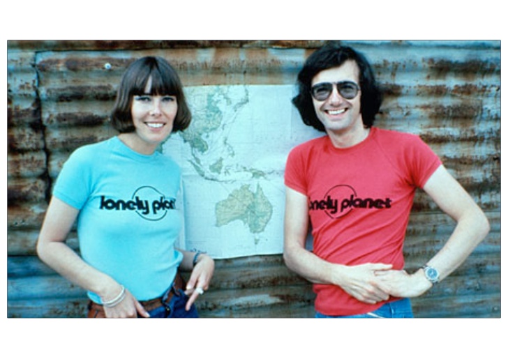 Tony Wheeler (right) Lonely Planet founder back in the 1970s and wife Maureen (left)