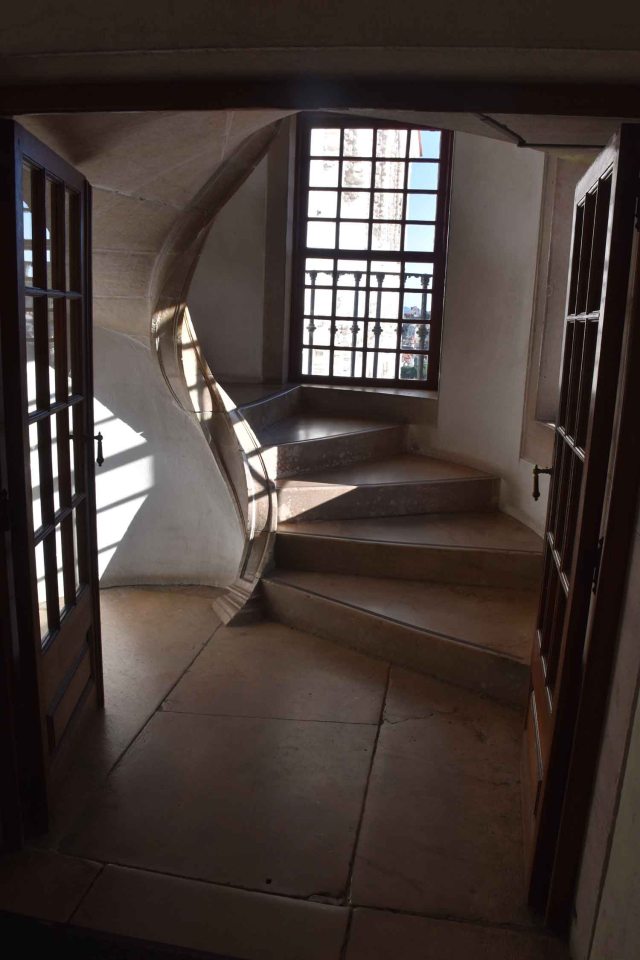 You start off with a curiously shaped palace from the outside, the two large chimneys being what your eye is drawn too. From the entrance you are faced with a hall, through a door a curving staircase. It doesn’t take long to realise that the inside is far more interesting than the outside!