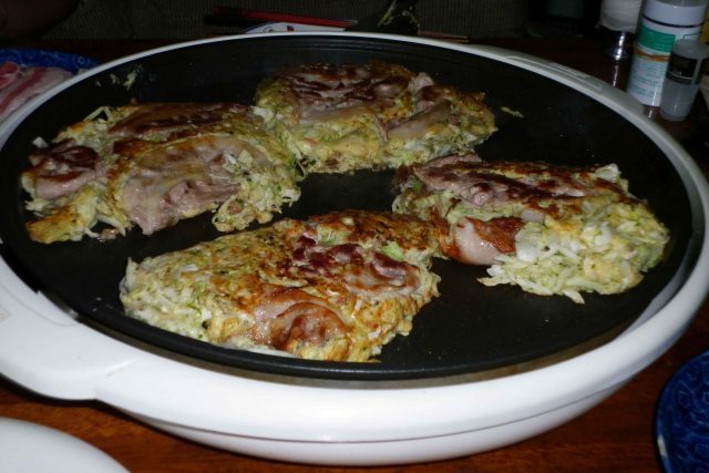 So again, this is not my favourite but I will eat it, as opposed to anything with fish. I actually recommend trying an okonomiyaki restaurant when you are in Japan because it’s a great experience and it’s something a little difference from your typical dining. I’ve had it in restaurant and also in home – my mother in law had a little hot plate she put on the table in front of us all and we cooked and ate our own, and that’s typically how it’s done.
