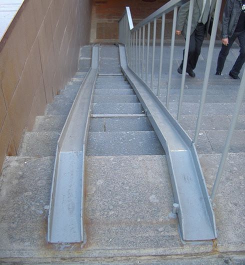 I have been to cities, especially in Eastern Europe, where I feel like they thought about it for a second and put in a ramp without thinking about it. I’m talking about ramps into and out of underpasses for example. Other cities in the world have them too. But a lot in East Europe. They are like two thin metal slides for each side of the wheelchair. And they are mounted to steps, I guess most people have seen them and not given them much thought.
