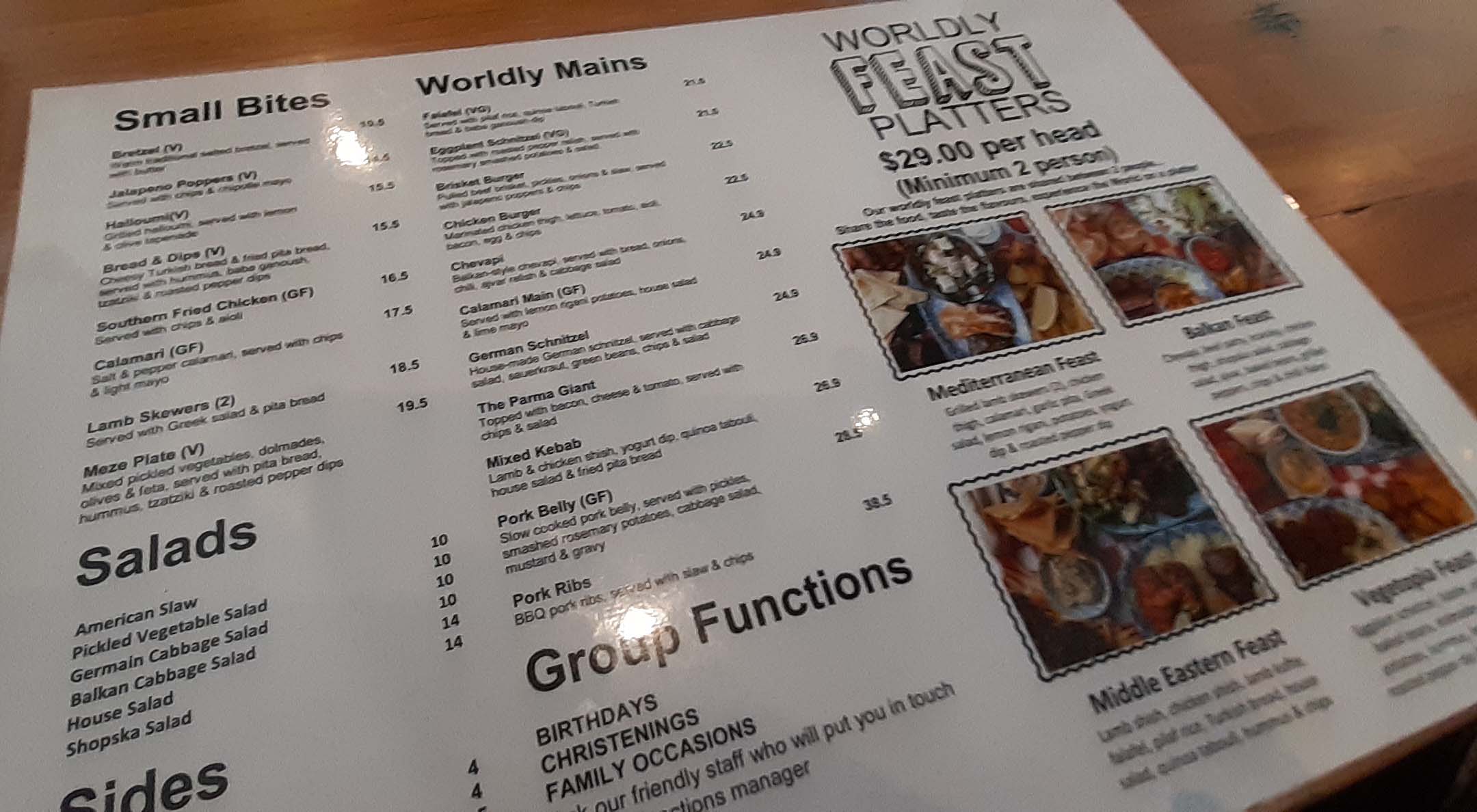 They did cover Greek and Balkan food. And perhaps Turkish. Cevapi and calamari were big on the menu, and I opted for the mixed kebab which included chicken, lamb and a lamb shish kebab. I expected maybe to see curries and a mix of other things there, maybe some Chinese food, but you can see the menu wasn’t really a stretch. It did have a special parmigiana on it which had bacon, and I think that was the Aussie inclusion. I nearly got it but thought it was more logical to have something that maybe suited the type of place they seemed to be. Which was a little unclear I must admit! However, I was glad in a way they didn’t try to extend themselves and cover loads of different cuisines because you might find they failed at all!