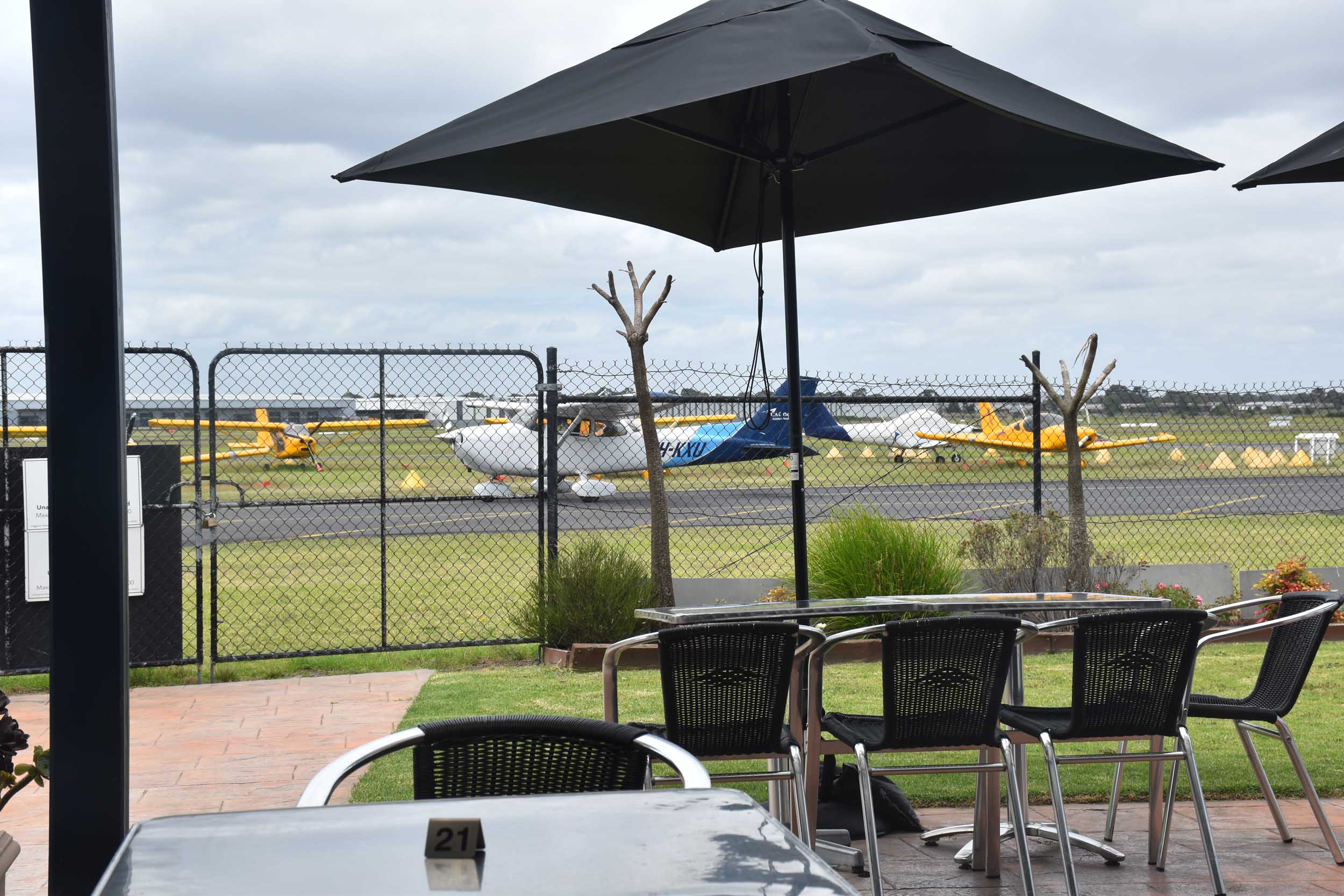 Outside the window was the outdoor seating, inside a fence and on the other side of the fence was the airport and runways. We saw fire safety vehicles running up and down (no incidents, just business as usual) and of course we saw planes taking off and the odd one landing. I must admit I was the only one excited at the prospect and I ducked out at one point just to grab a couple of photos. It was pretty cool by the way that whenever I turned to my left and looked out the window I saw planes taking off!