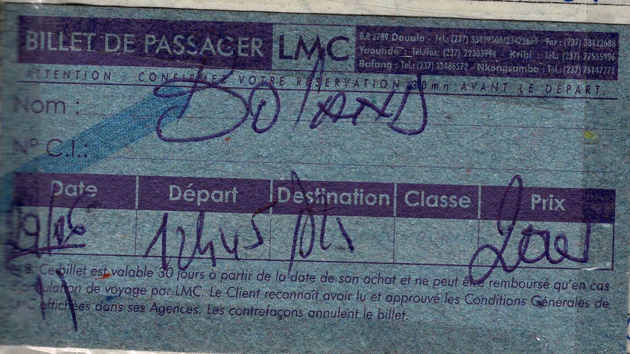 Getting into Douala the traffic was abysmal. Slowly we inched towards the Central Voyages Depot. Then a taxi across to the gare routiere. The worst was getting the bags out of the bus. They had been next to a leaking cooler of fish – yes fish water had soaked the bottom of our backpacks! The vile smell was impregnated in them now! The gare routiere was just a bunch of minibuses and taxis alongside the road. When the taxi price was revealed as the same price as the crowded minibus, we took it. Mini-mart just there, so I grabbed 2 ham rolls and a doughnut for my dinner, we were off!