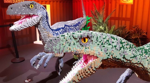 The exhibition was up some stairs as I didn’t see there was an escalator next to them. It reminded me of the entrance to the Jurassic World ride at Singapore Universal Studios where I went years ago now. It had the whole gate image, synonymous with the movies. Yes, it wasn’t just Lego dinosaurs, it was an exhibition of the movie franchise.