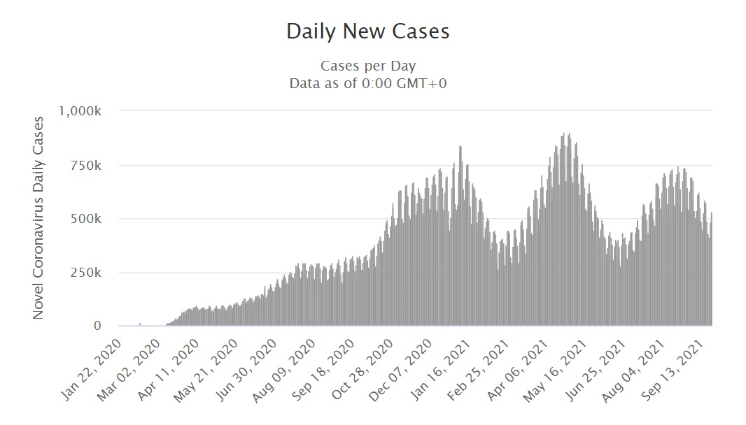 Worldwide corona virus cases over the last month are trending down. The planet seems to be on the downward curve of the third wave. Will new variants produce a fourth wave? This is the question we all hold our breath to find the answer. And one thing the forecasts of doom at reopening in Australia are not suggesting is that after the increase in cases, there should, in theory, be a natural reduction in cases because these things come in waves and the waves go up and the waves go down.