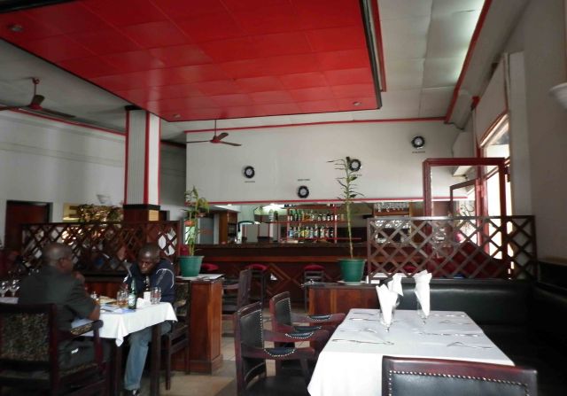 Here I sit getting the last two drops of green ink from my pen La Cintra a positively nice little restaurant in central Yaounde. The room (I stayed in) proved perfectly adequate I mean both best night sleep since Limbe at least if not Douala or Kribi at some point. Still the chest is heavy coughs. It could easily be put down to pollution and dust, of which there are a lot of both in Cameroon,