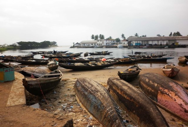 The boats look a bit like stranded fish