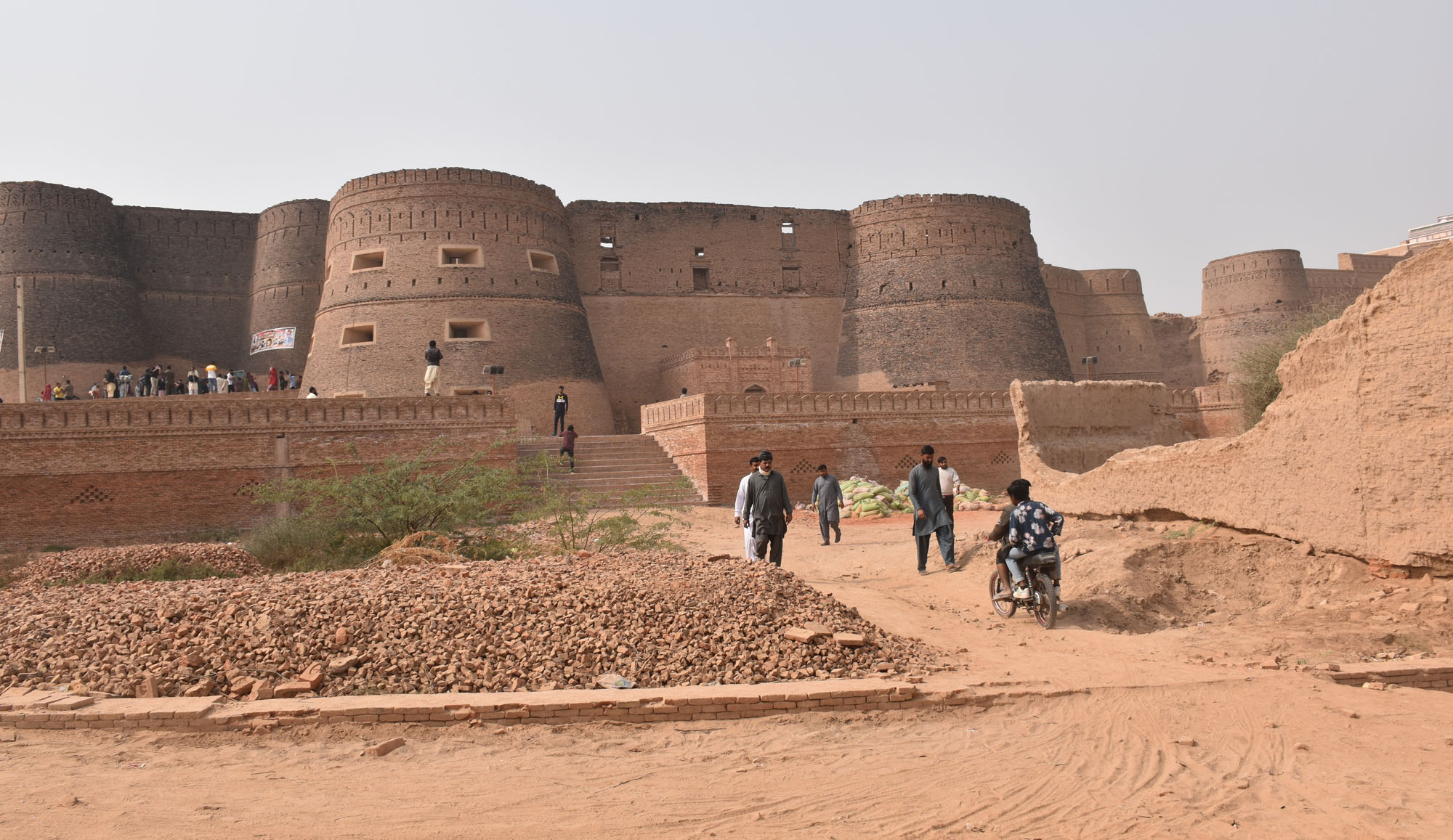 The Derawar Fort though is impressive enough from the outside, built in the 9th century and used in the 18th by the aforementioned Nawab family. To get an idea of how big the place – the walls are up to 1500 metres long and the walls are up to 30 metres high. It’s flippin’ BIG. And when I was standing outside the entrance, the place was busy considering no-one could come in. I was interviewed by a dude who said he worked for DW about the rally.