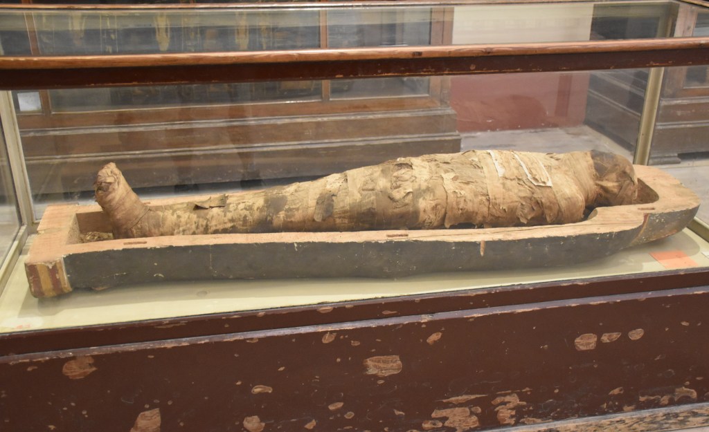 There are two levels in the museum, and on the top level parts have unlabelled sarcophagi on shelves like they are waiting to be examined. The building honestly isn’t big enough to house everything effectively although they do do a decent job with the space they have available. It must be hard to leave without feeling completely overwhelmed as I did.