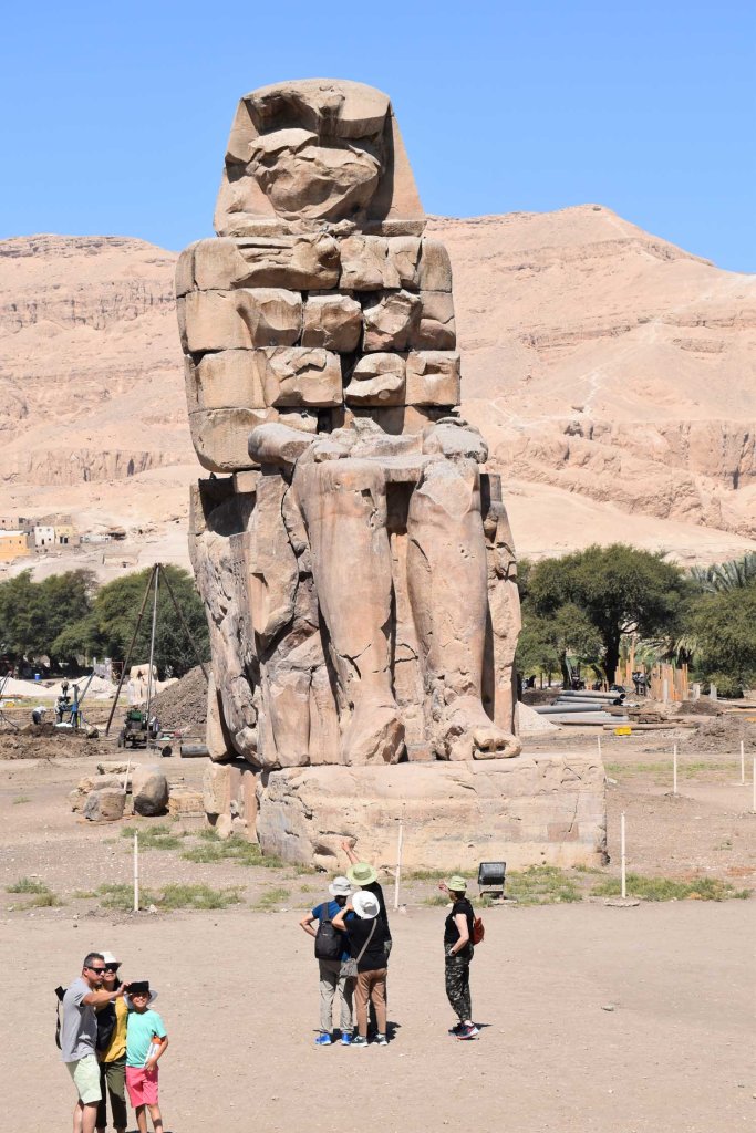 So we whizzed along on the roads heading towards, roughly, the tour group. The first thing on the itinerary was the Temple of Queen Hatshepsut, which I remembered visiting from 1999. However, it was too late to get there and join the group. Well actually, that was probably the second thing on thr tour, behind the Colossi of Memnon. Which is where we stopped before joining the group, meaning the temple was the only thing I missed.