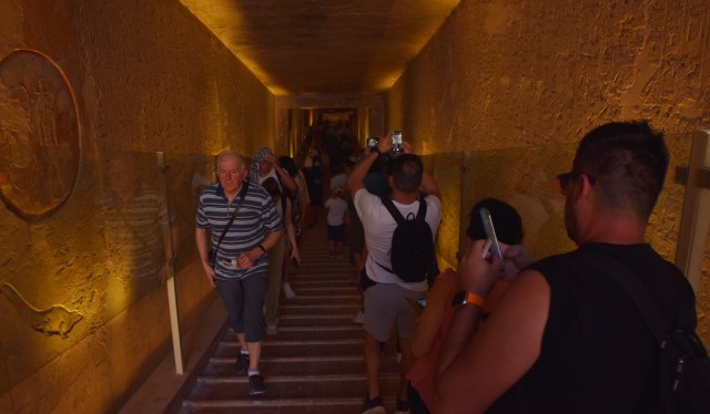 You are left to explore the tombs by yourself, guides are not allowed to stop inside and chat. They were good choices because they all went quite deep. Generally the opening passageway would have paintings on the wall, and then a chamber where Pharoah was buried, sometimes the passageway would take a corner or two on the way. Pretty hot in there too, outside the sun blazed and shade was precious. Photos and the video do the tombs way more justice than ,y words could.