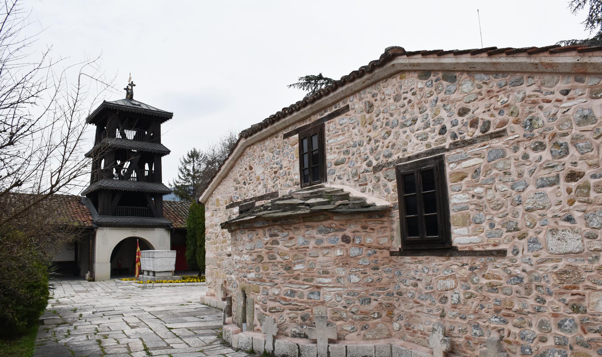 Weave your way through and you will reach a couple of significant religious places. Firstly, we have the Macedonian Orthodox Church to the ‘Ascension of Jesus’, also known as the Sveta Spas Church which is a curious little church in a courtyard, built partly underground. The courtyard has buildings around it and all seems to be in operation. It dates back to the 16th century but is built on the foundations of an older church. It’s got some beautiful frescoes and lattice work inside.