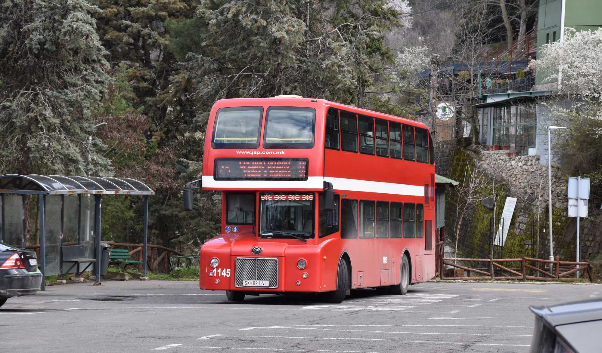 Mt Vodno is a mountain overlooking Skopje. To get there you take bus number 25 from the main bus station. The buses are like hourly, so not super frequent, but they are red double-decker buses which I think is a bit cool at least. Once you get to the end of the bus you hop over to the cable car/gondola ride. It I think only runs for half an hour every hour in the off season, so I had a short wait for it to be open.