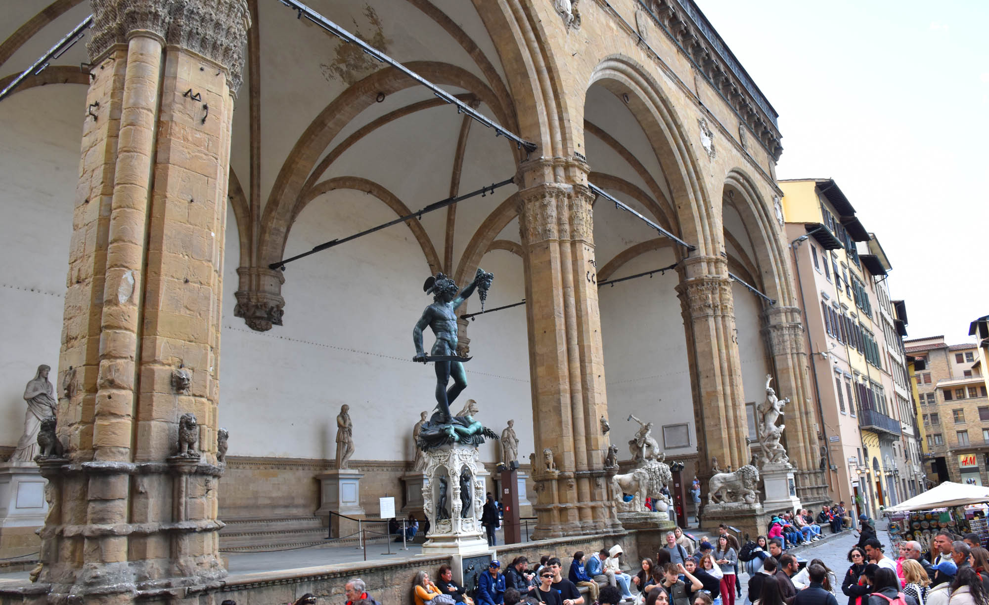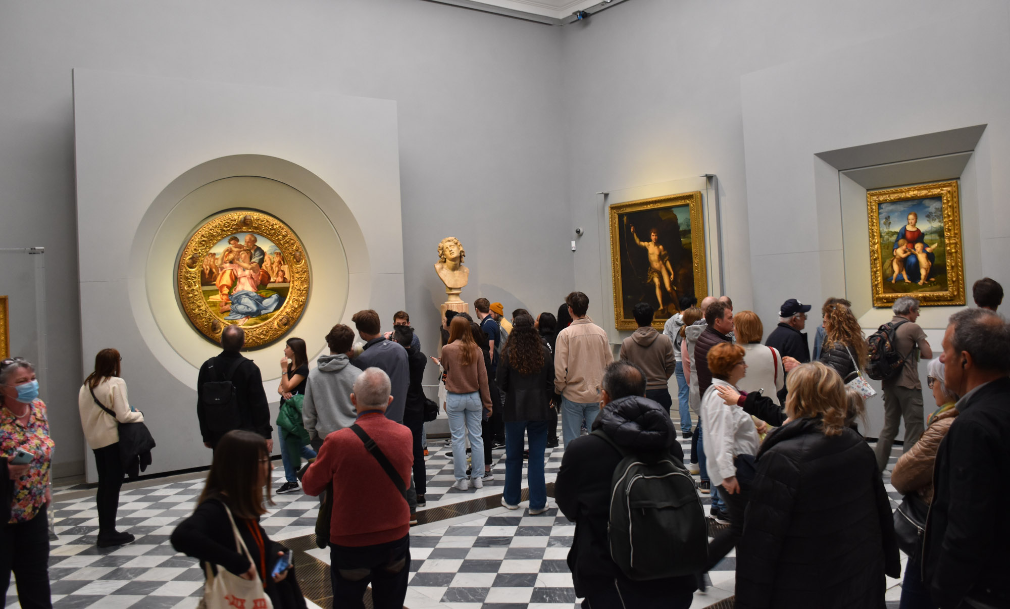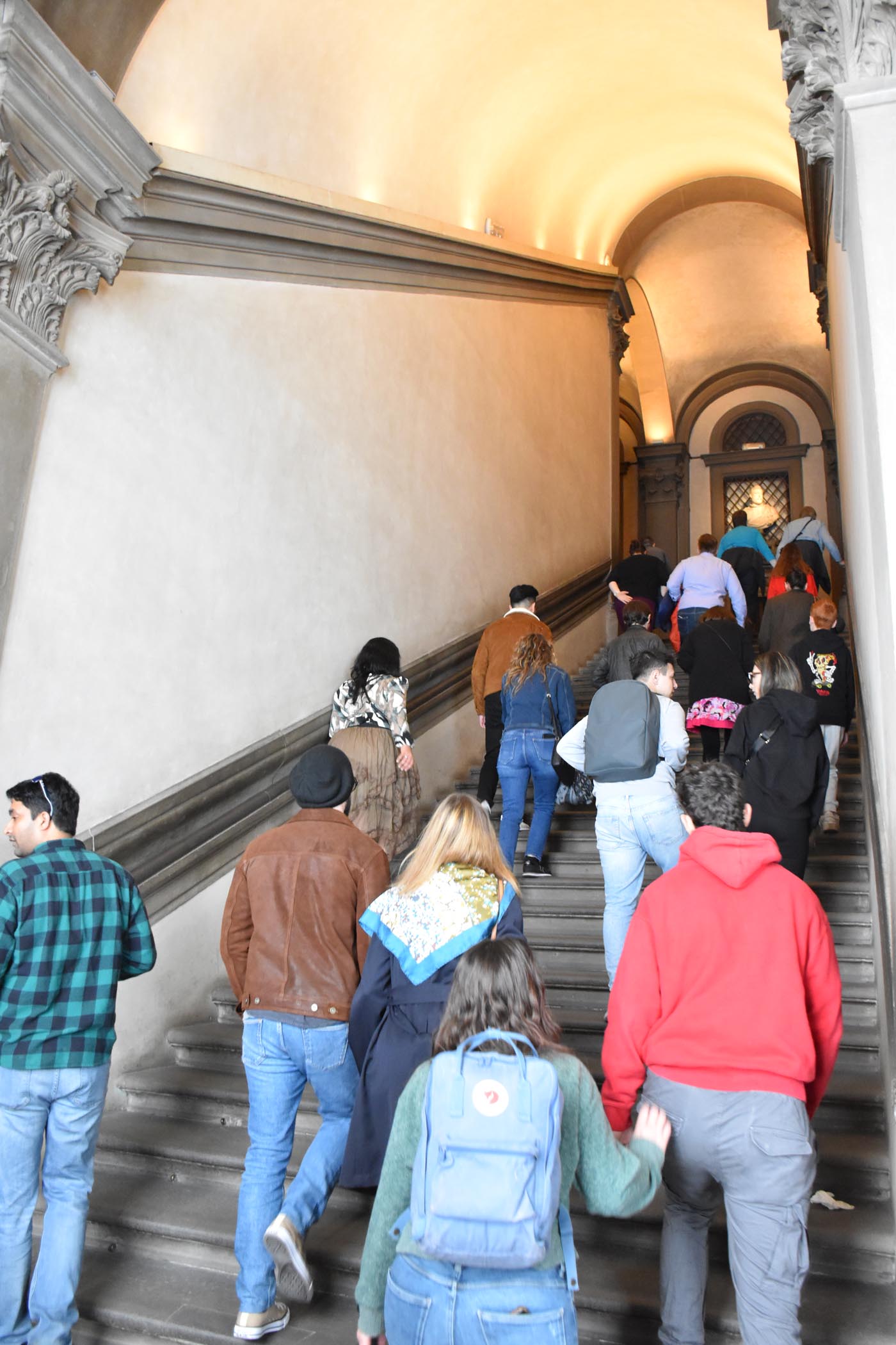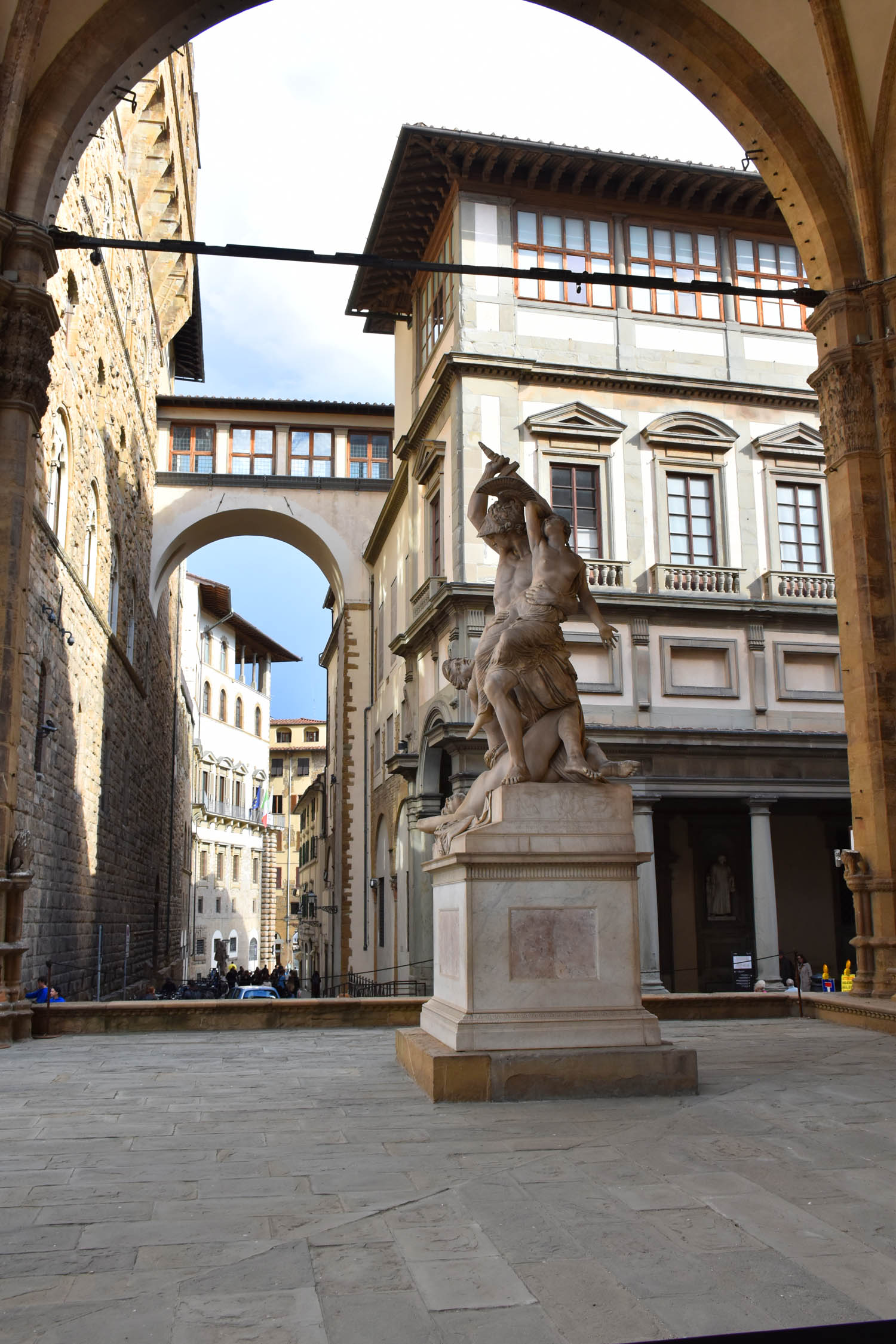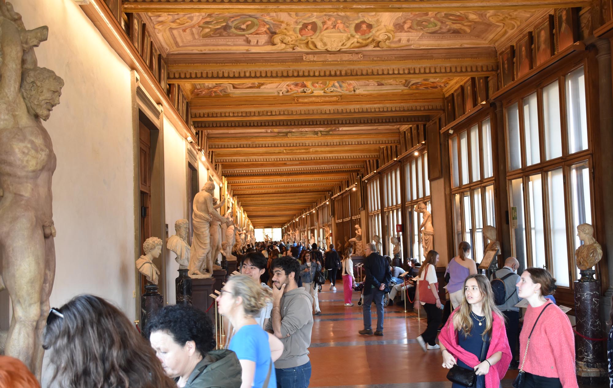 The Galleria Uffizi opened in 1581, so it’s one of the world’s older galleries and was commissioned by Cosimo I de Medici. It was packed as I expected and there is such a wealth of art inside which made me wish I knew more about art. There is a concentration as you would expect on Renaissance Italian Art, with the most famous work perhaps being ‘The Birth of Venus’ by Botticelli, also known as ‘Venus on the Shell’. The building is on both sides of Piazzale Uffizi which leads to the river. It’s linked with a sort of overpass so you see a few views. Along with all the Renaissance art, there are more Roman busts and statues than I’ve ever seen in one museum before!