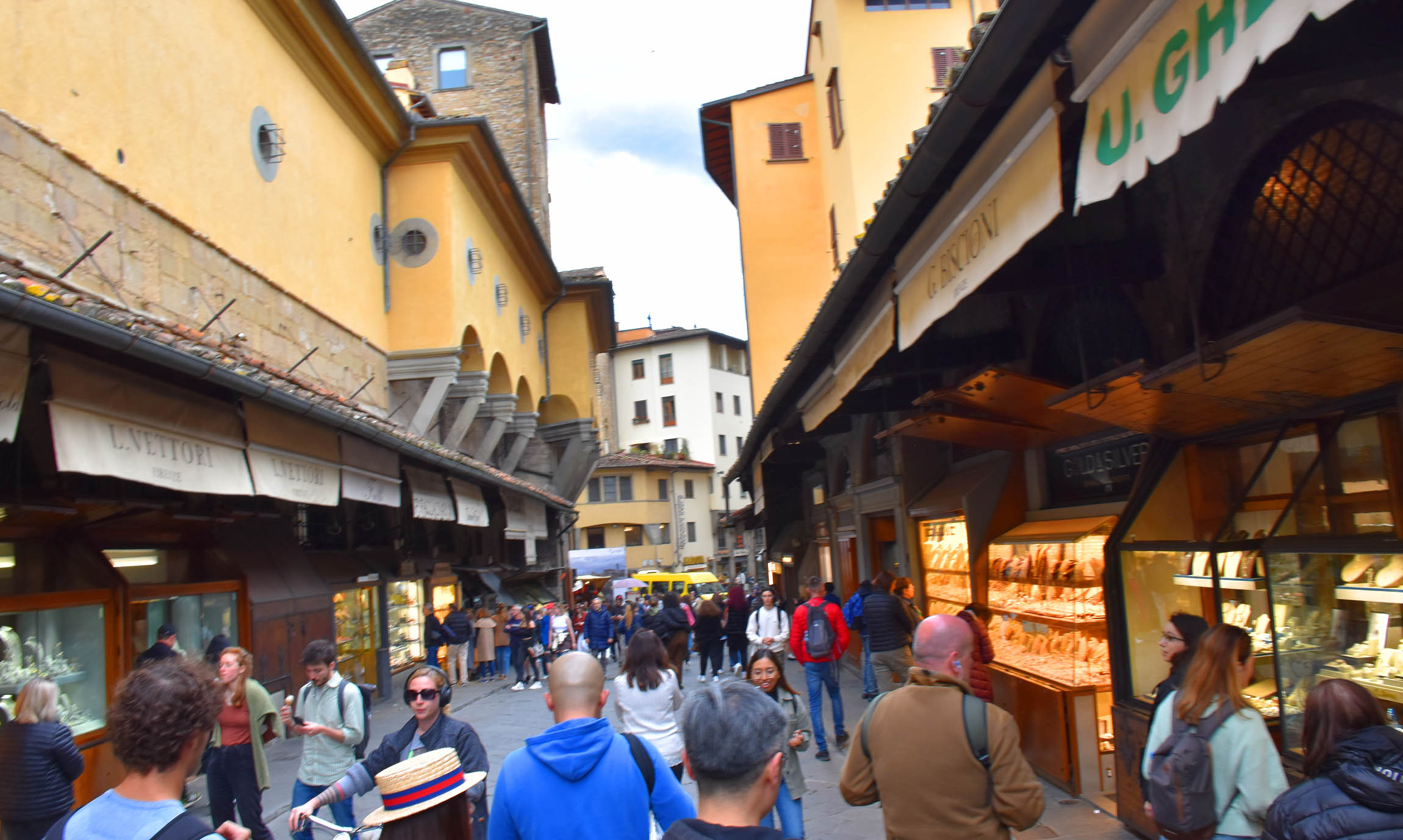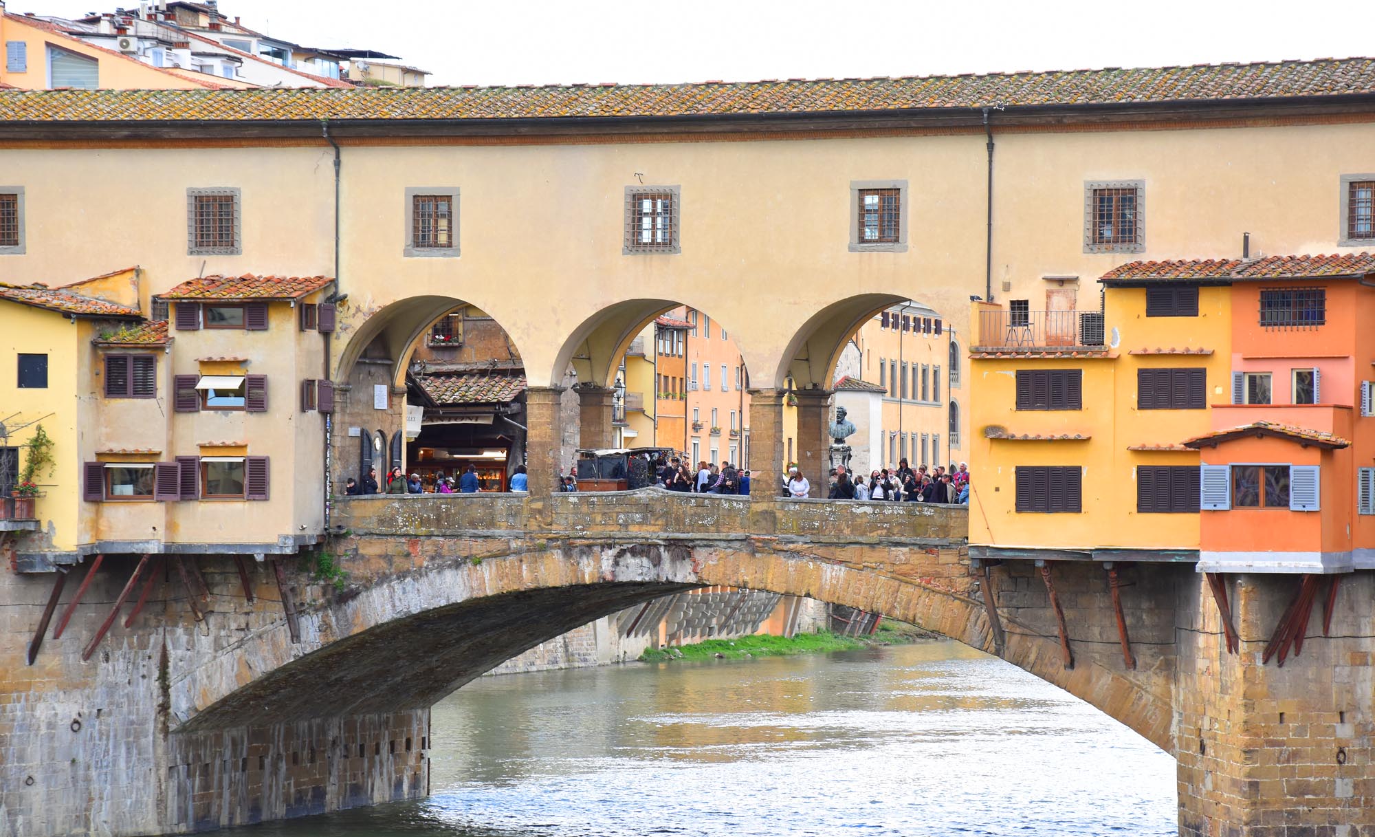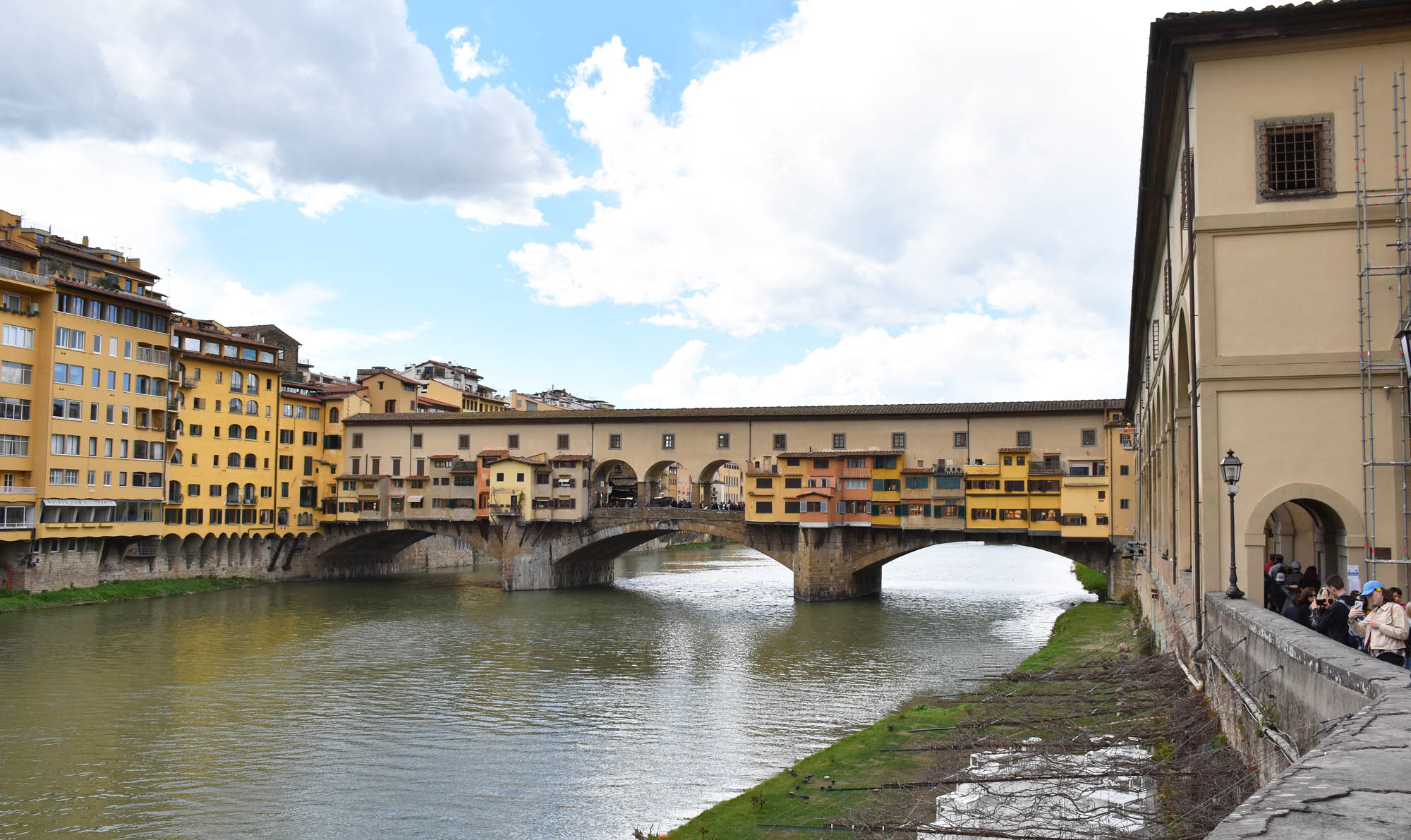 As for this day, well I headed on towards the river and came to another square just before the Uffizi Gallery, Piazza della Signoria. To one side was the Palazzo Vecchio, and on another was a gallery of Roman statues. I was heading on towards the river and the famous Ponte (Bridge) Vecchio. Passing through two sections of the Galleria Uffizi I came upon the river which was (needless to say) the perfect place for selfies, I made my way to the Ponte Vecchio to cross the river.