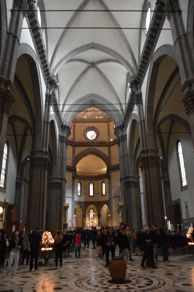 Back to the Duomo, there was a bag check and metal detector to enter, something that’s pretty common in churches that receive tourists etc these days. Which is you know, fair enough. A little history of the Duomo – construction was commenced in 1296, however due to many factors including the death of architects and the Black Death, it was not completed until 1430. It’s 153 metres in length, a width of 90 metres and a height of 114.5 metres.