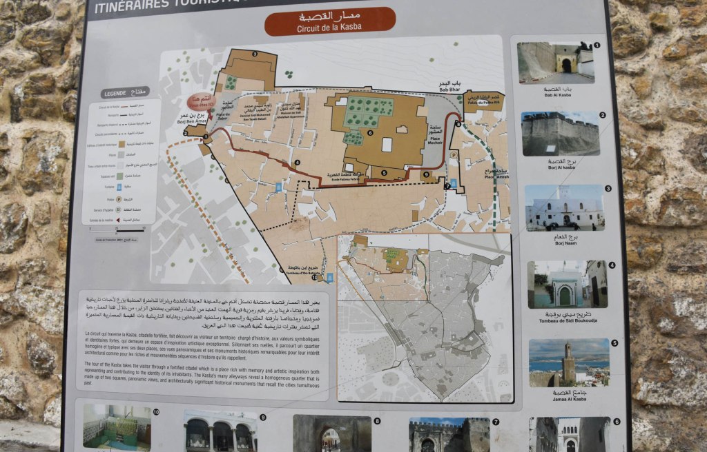 We sort of entered the Casbah from a concealed area a bit, although this was the main entrance. You see the Casbah walls to one side of a gate that you enter through. This Casbah was built from 1684 after a conflict with the English.