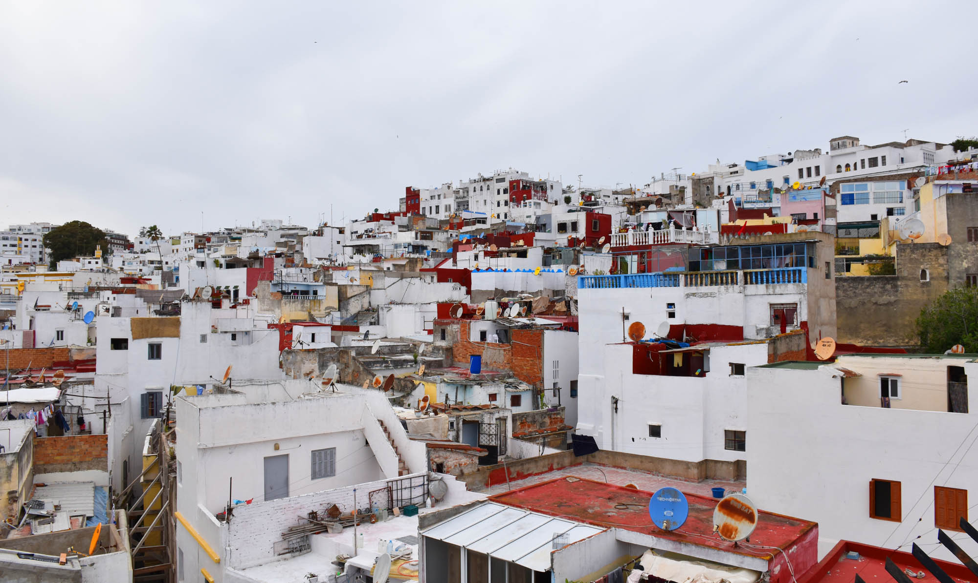 Tangier is a port/coastal city stretched along a small part of northern Morocco. It is not a flat city, apart from a stretch along the coast for maybe a kilometre or so, but once you get a hundred metres inland or so (depending on your position) it has a pretty steep incline. Atop one of the hills/cliffs is the Casbah (or Kasbah) – a small walled citadel that looks over the sea and the city and is the primary tourist attraction of Tangier. It’s also got some nice beaches, and its buildings date back to the first half of the 20th century in the downtown area, whereas the Casbah dates back to the 17th century and there are buildings and dwellings that date back just as far or earlier.