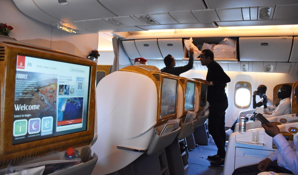 The flight was with Emirates to Dubai. It was delayed by an hour or two, but it was due in very early morning in Dubai so I didn’t care. It was an older layout on the plane and the steward actually apologised that it wasn’t a newer plane. However it was an excellent flight I there was nothing to apologise for. There weren’t single seats but the space was generous I could get up from the window seat across the guy in the aisle seat without disturbing him to use the loo etc. Boeing 777, I was really impressed and think Emirates really is still an outstanding airline with such great reach, they fly to a very high number of African countries more than any other non-African airline and I suspect probably any African airline too!