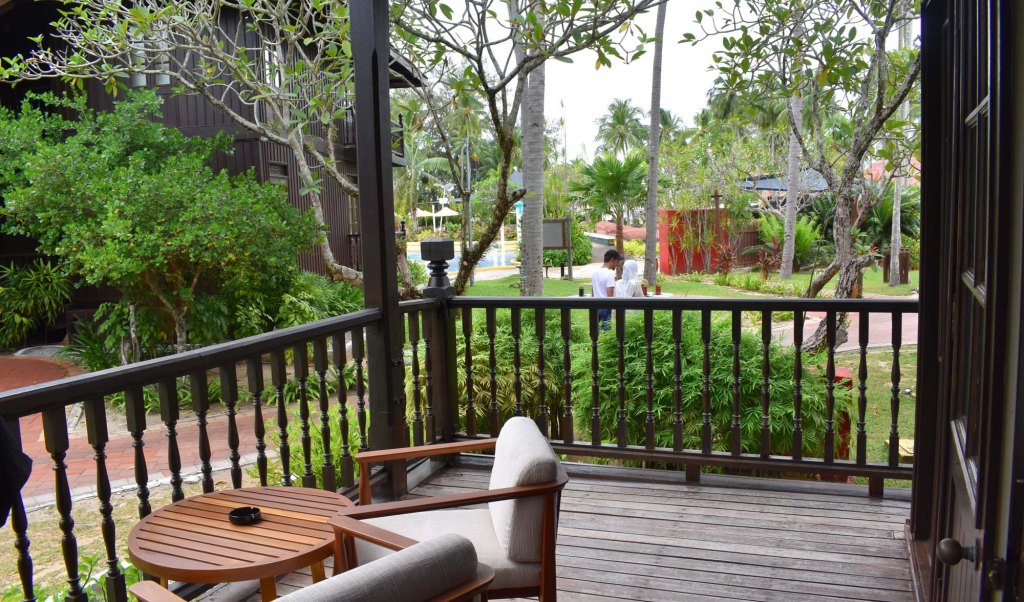 There was a large welcome hall with a bar on one side. Malaysia is a Muslim country and this resort caters for all, so there is alcohol available for those who want it. The welcome was a bit subdued I guess with a bit of paper work to fill in, and then we were taken to our room via a golf buggy. The buggy is available at request from reception to take you around the resort, as the grounds are big. We didn’t need it as we were relatively close to the reception, the pool and the restaurants. There were actually two pools at the resort, but one was being renovated when we were there – possibly a third restaurant under renovation too.