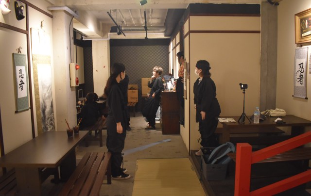 I was joined by a friend of my wife, Hisako, and we got the Jiraiyi ‘course’ which included a drink and costume/clothing rental. This is the second top tier, ‘Sasuke’ Level gets you something to eat as well – there are four levels in total. I think you can also go a wandering the streets as ninjas but perhaps not at the Harajuku branch.