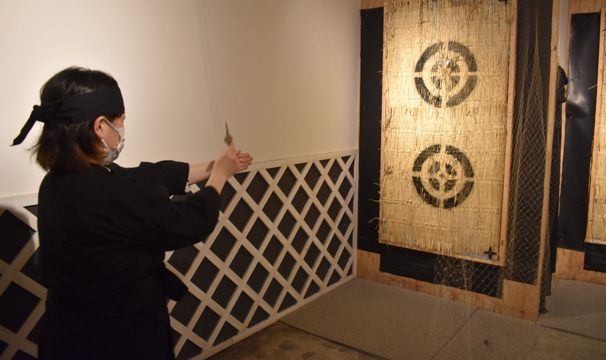 First, we practiced star throwing at the target. Hisako did really well, pretty much all my stars hit the target and bounced off! Obviously I didn’t quite have the angle right or something I really have no idea why they didn’t stick, but they didn’t.