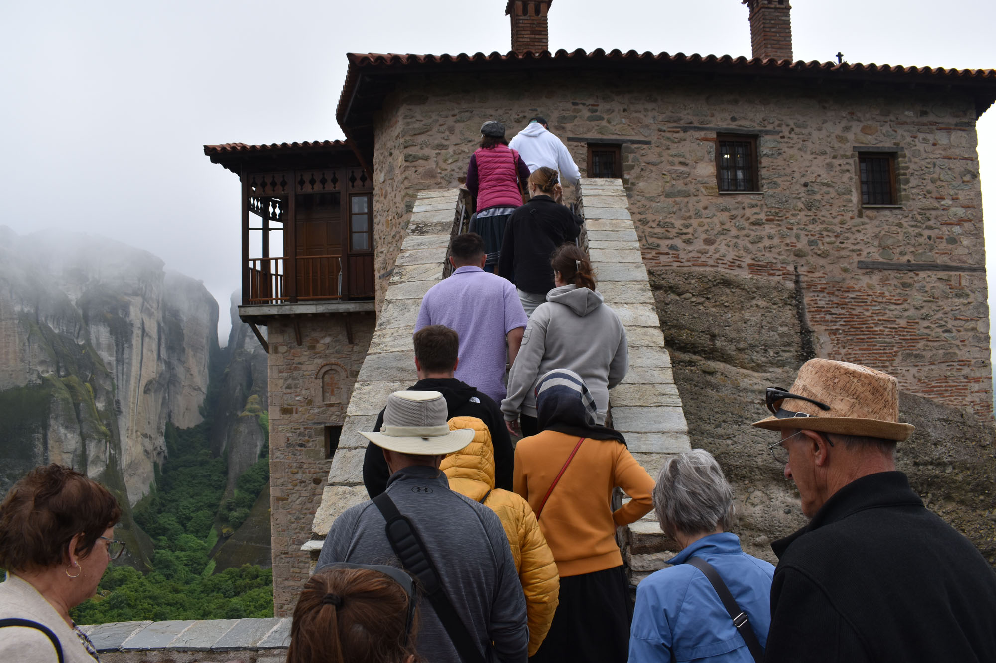 Thankfully the first stop, which was or photos and views, was when the clouds were a little less populous and not as low. Our guide rattled off so many amazing facts through the day – and she was amazing did a great job – that my brain can’t really remember a lot. Just that the monasteries have been through a lot over the centuries. Closed down by the Ottoman Empire at one point, housing resistance and then bombed by the Germans in World War II, they’ve been through it all.