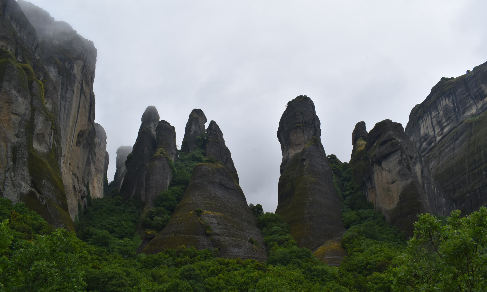 But at least we were actually going to see what we came here to se. Now is a good point to explain that the weather wasn’t great on this day. I had so many perfect, sunny days in Greece, but it rain a lot and the clouds were down over these rocks and mountains quite a bit. I didn’t get the postcard shots but there was atmosphere, the real downside was that visibility was low. We abandoned a planned stop for photos on the way out because there was nothing to see.